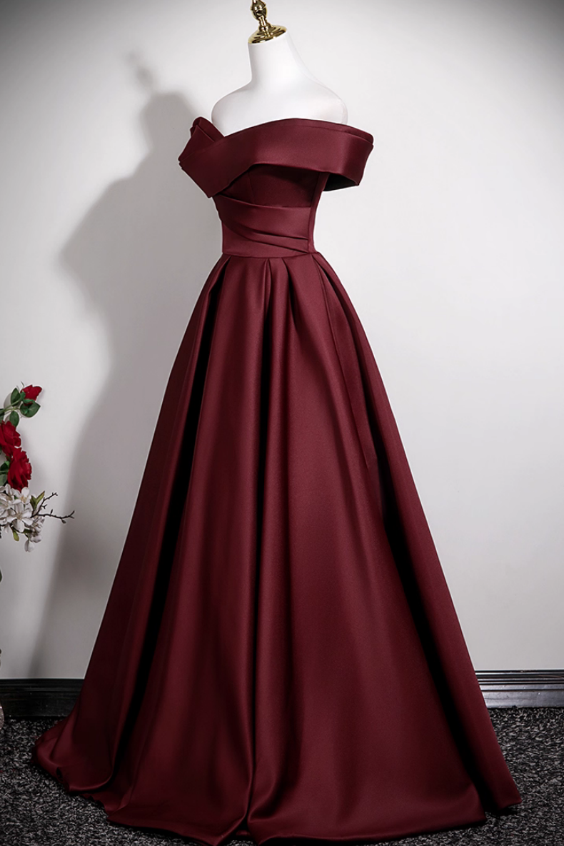 Off the Shoulder Dark Green Pleated Long Formal Dress