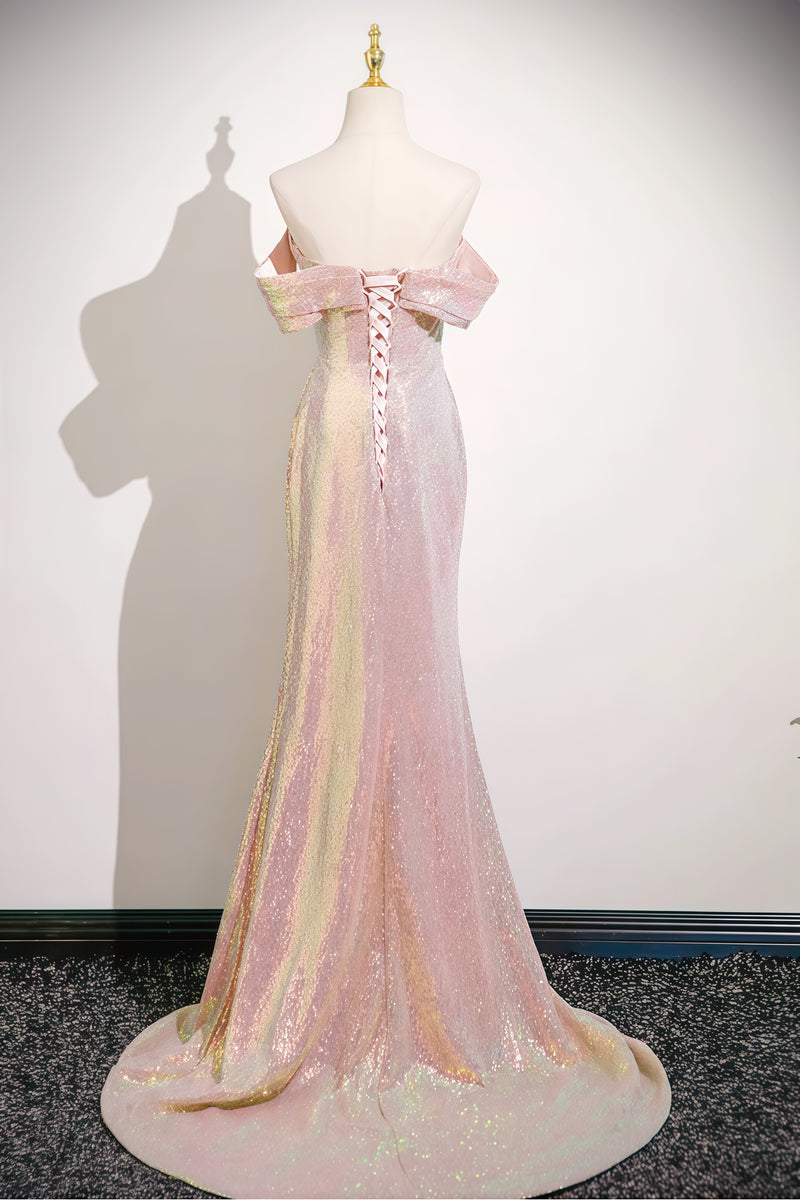Light Pink Sequin Off-the-shoulder Mermaid Dress