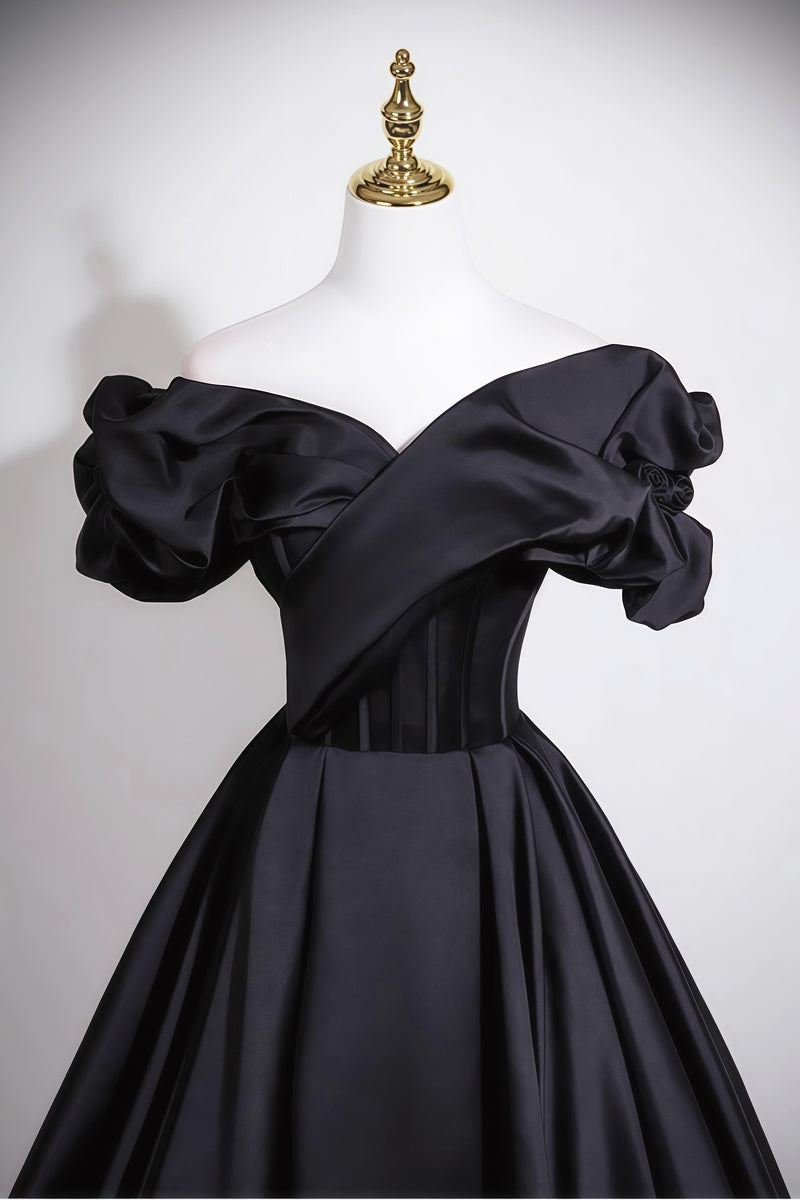 Black Off-the-shoulder Puff Sleeves A-line Dress