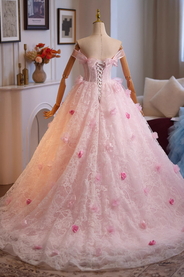 Light Pink Bow Rhinestone 3D Floral Ball Gown
