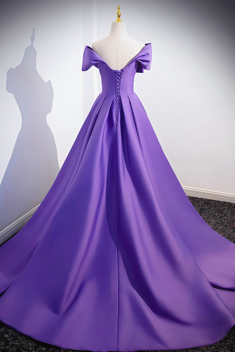 Off the ShoulderPurple Floral Embroidery A-line Prom Dress