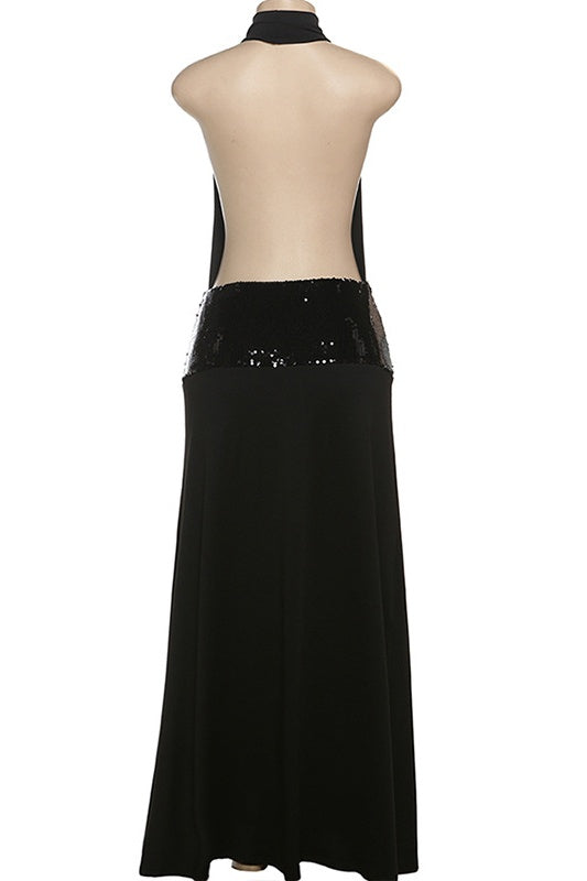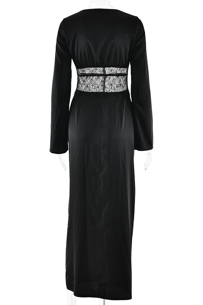 Black V-Neck Lace Maxi Dress