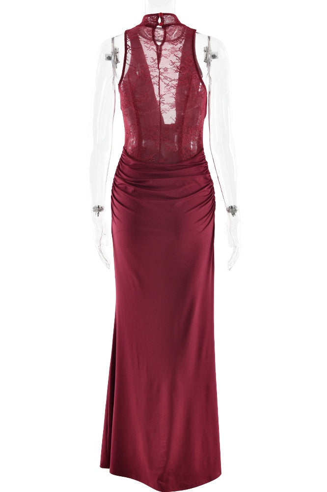 Red Halter Tie Fitted Long Dress