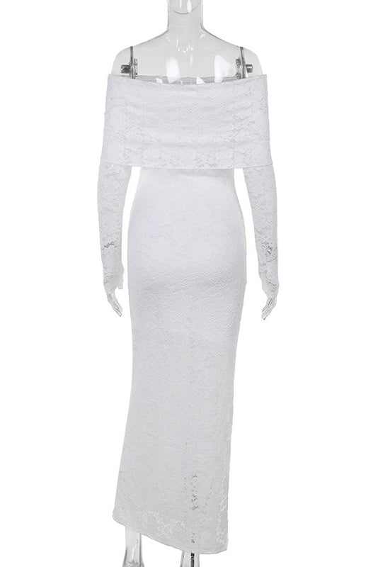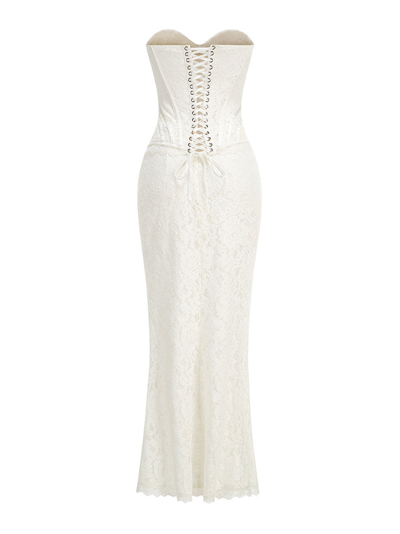 White Sweetheart Lace Long Dress