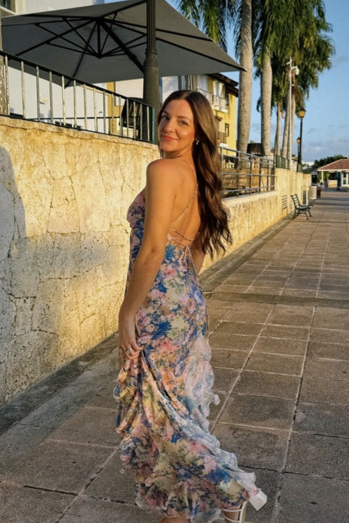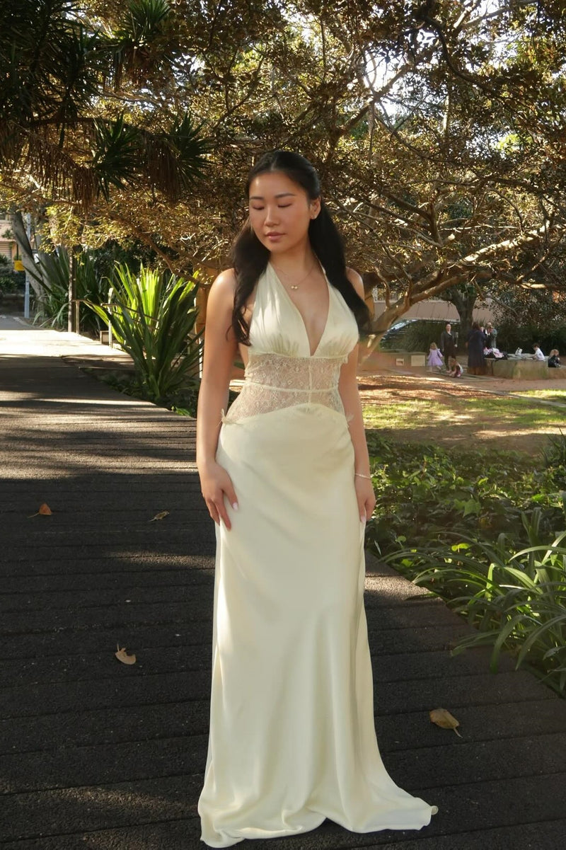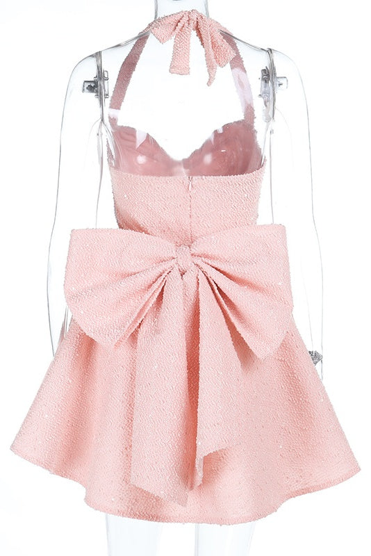 Red Halter Ruched Bow Long Dress
