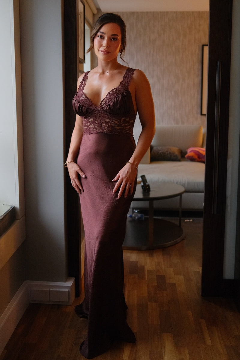Brown Square Fitted Long Dress