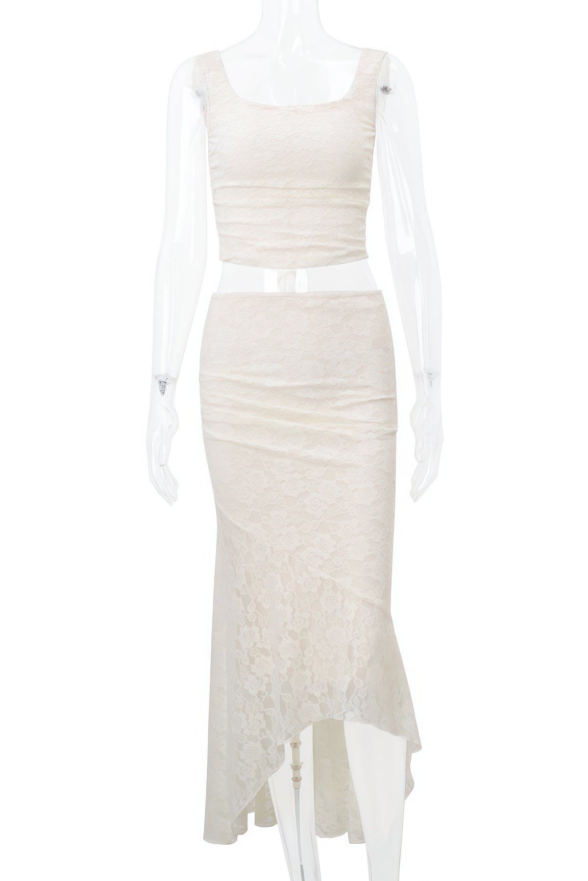 Apricot Lace Print Mermaid Asymmetrical Two-piece Set