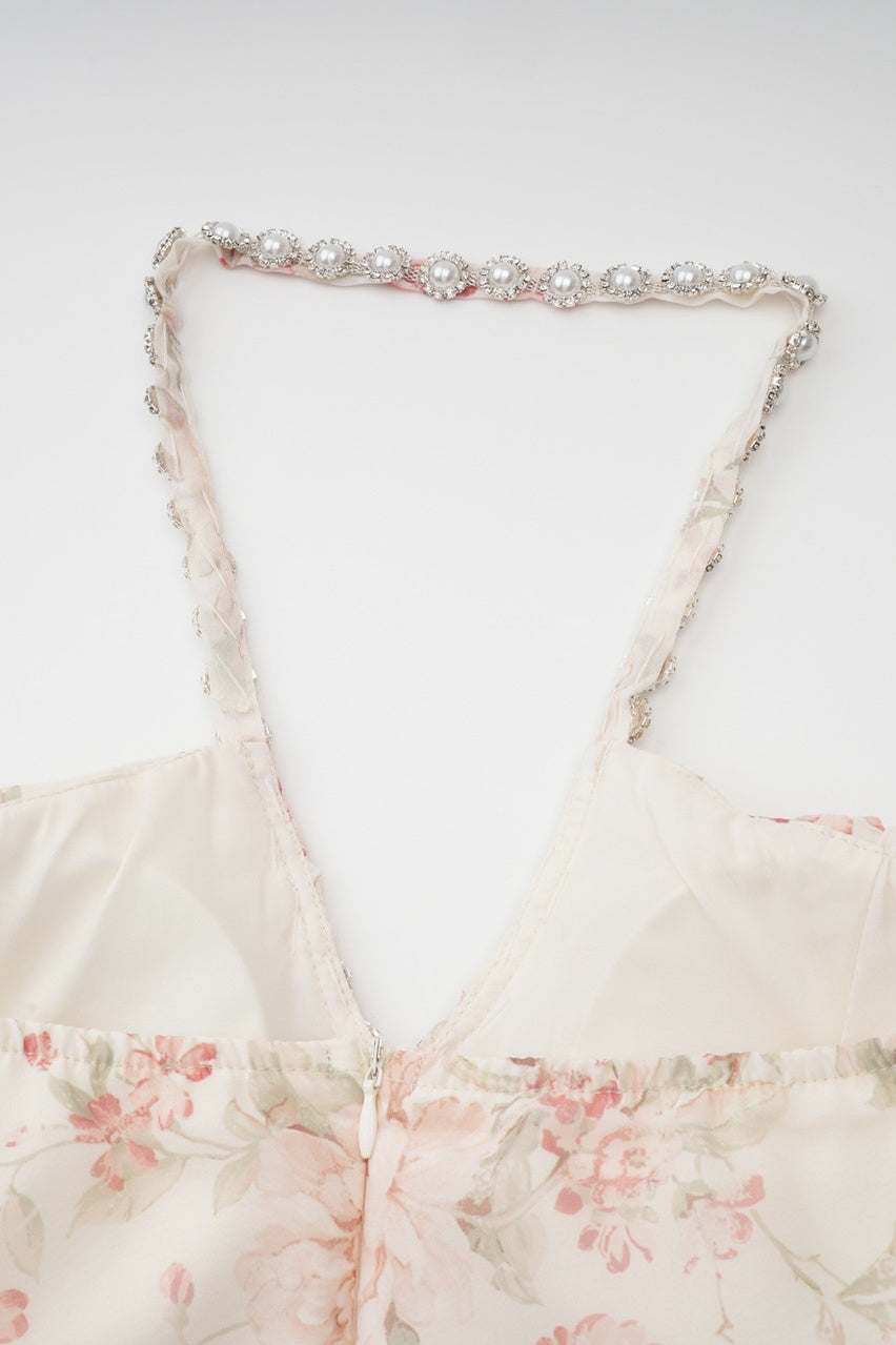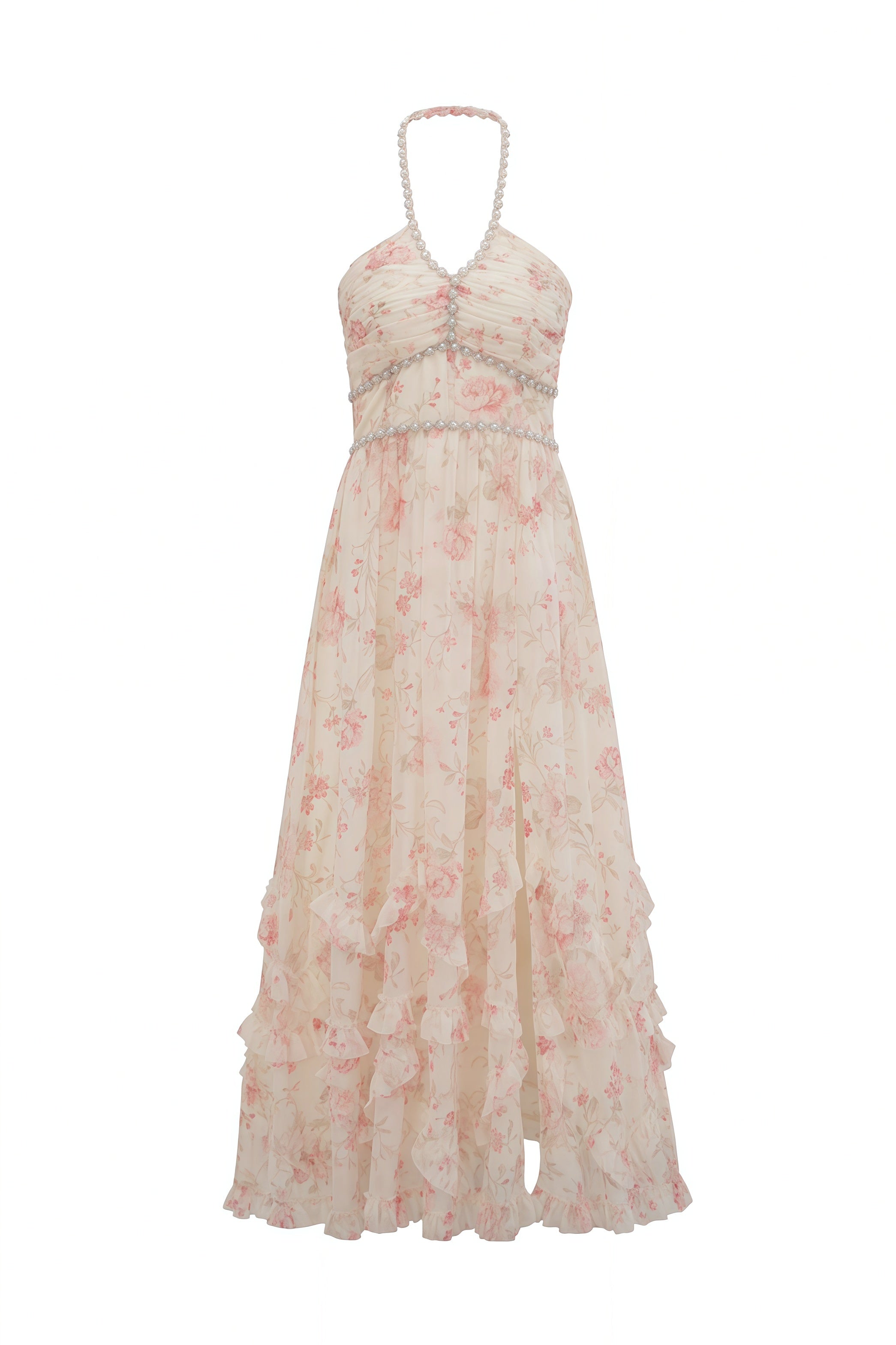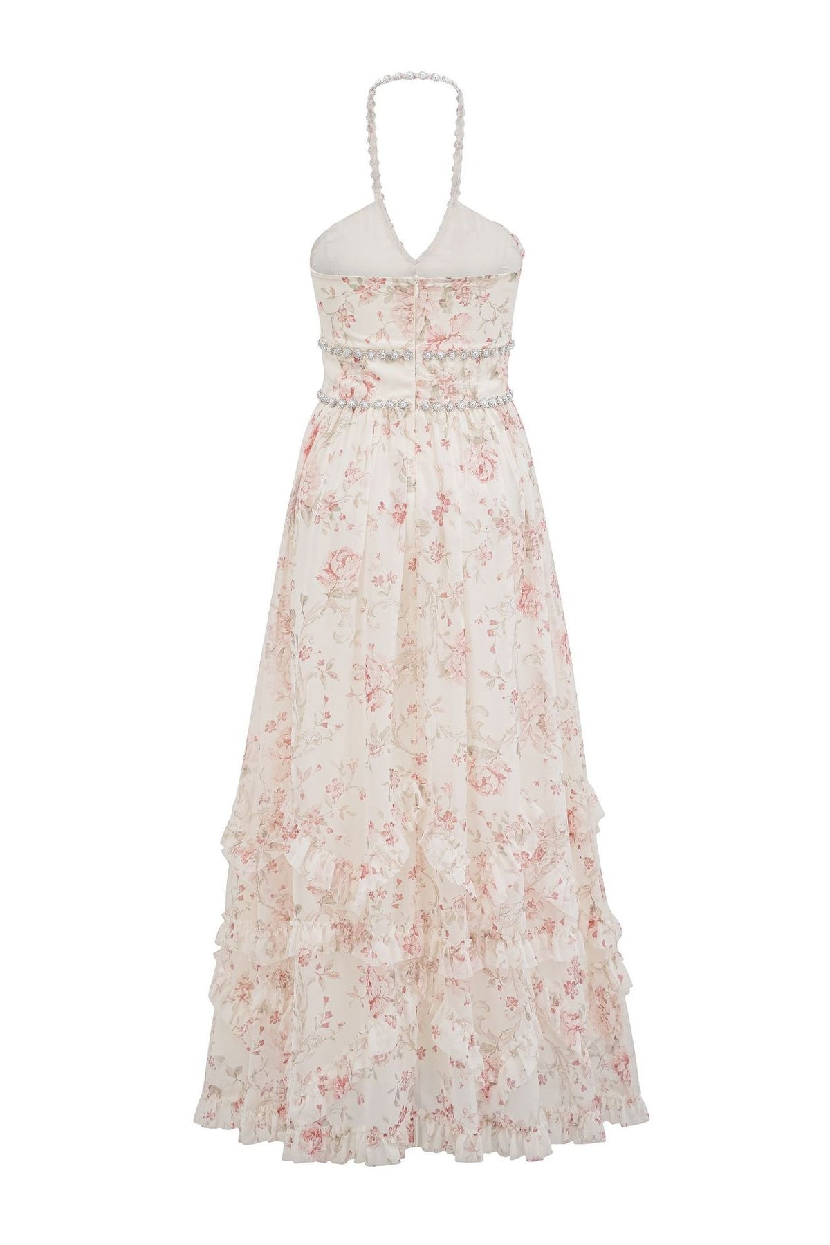 Apricot Rhinestone Halter Long A-line Dress