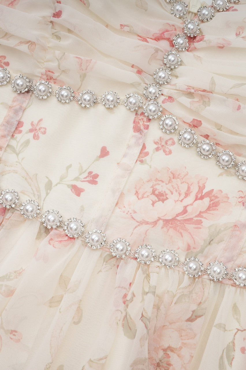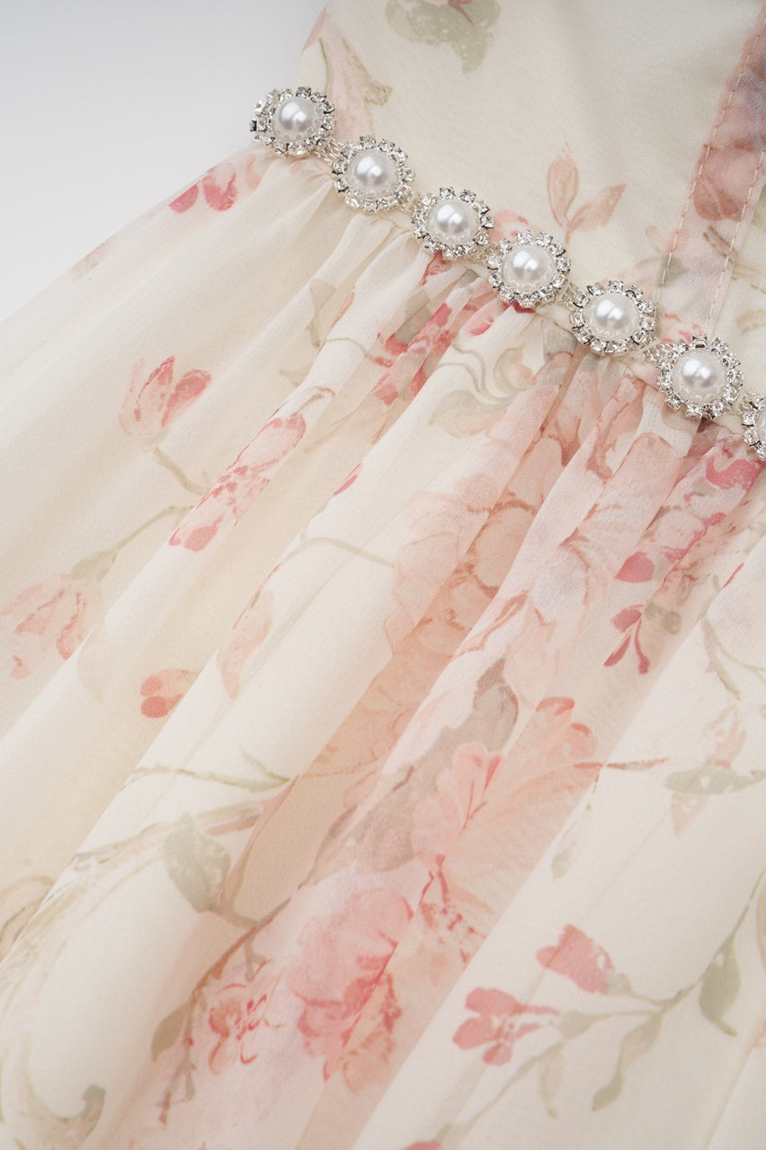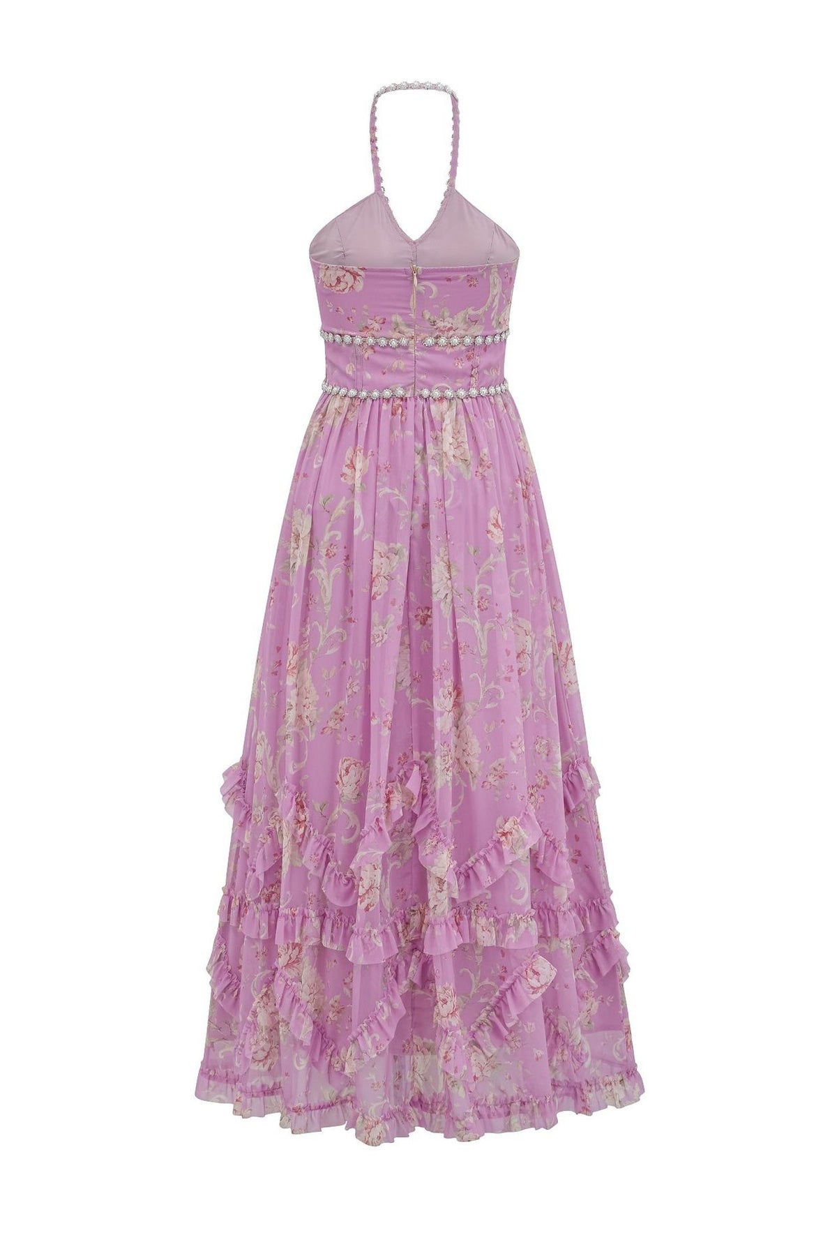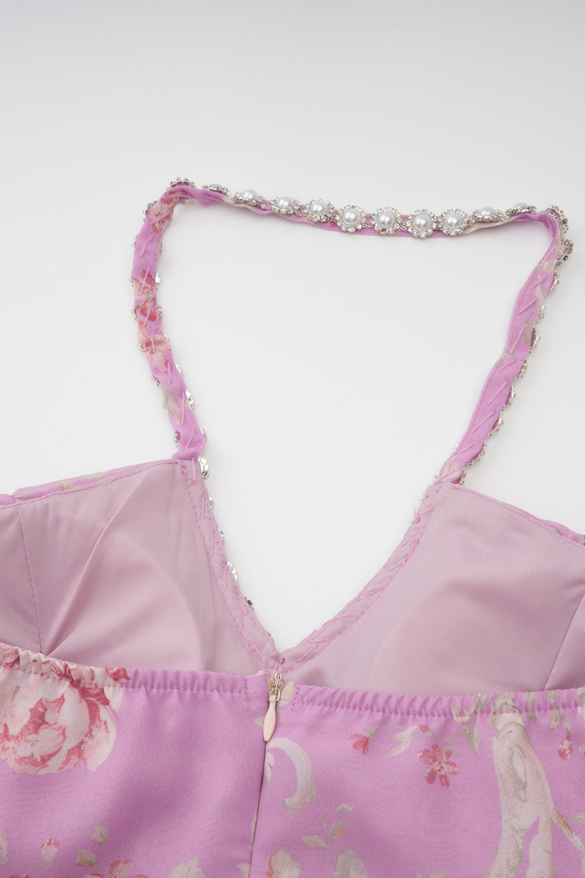 Apricot Rhinestone Halter Long A-line Dress