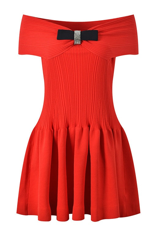 Black Off-the-shoulder Bow Mini Dress