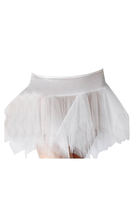 This A-line skirt in black features a high-low hem and an elastic waistband, crafted from spandex material and adorned with a delicate floral print.