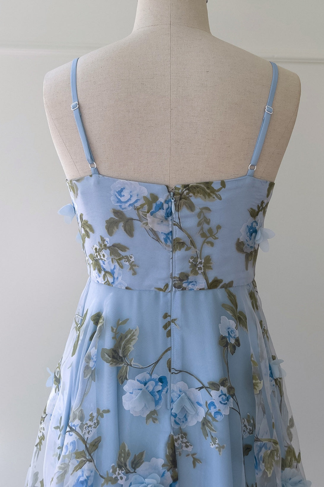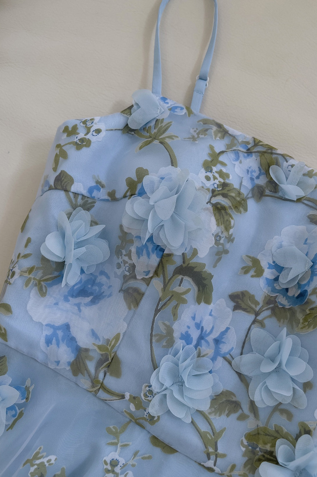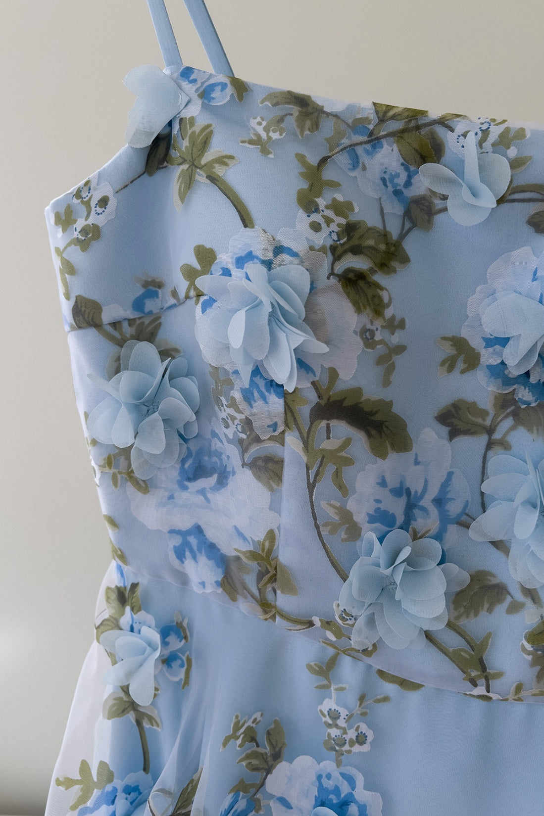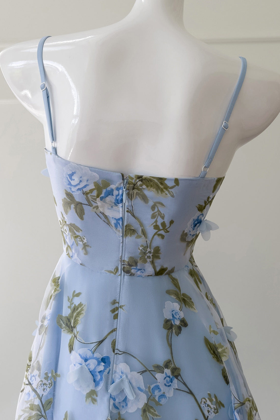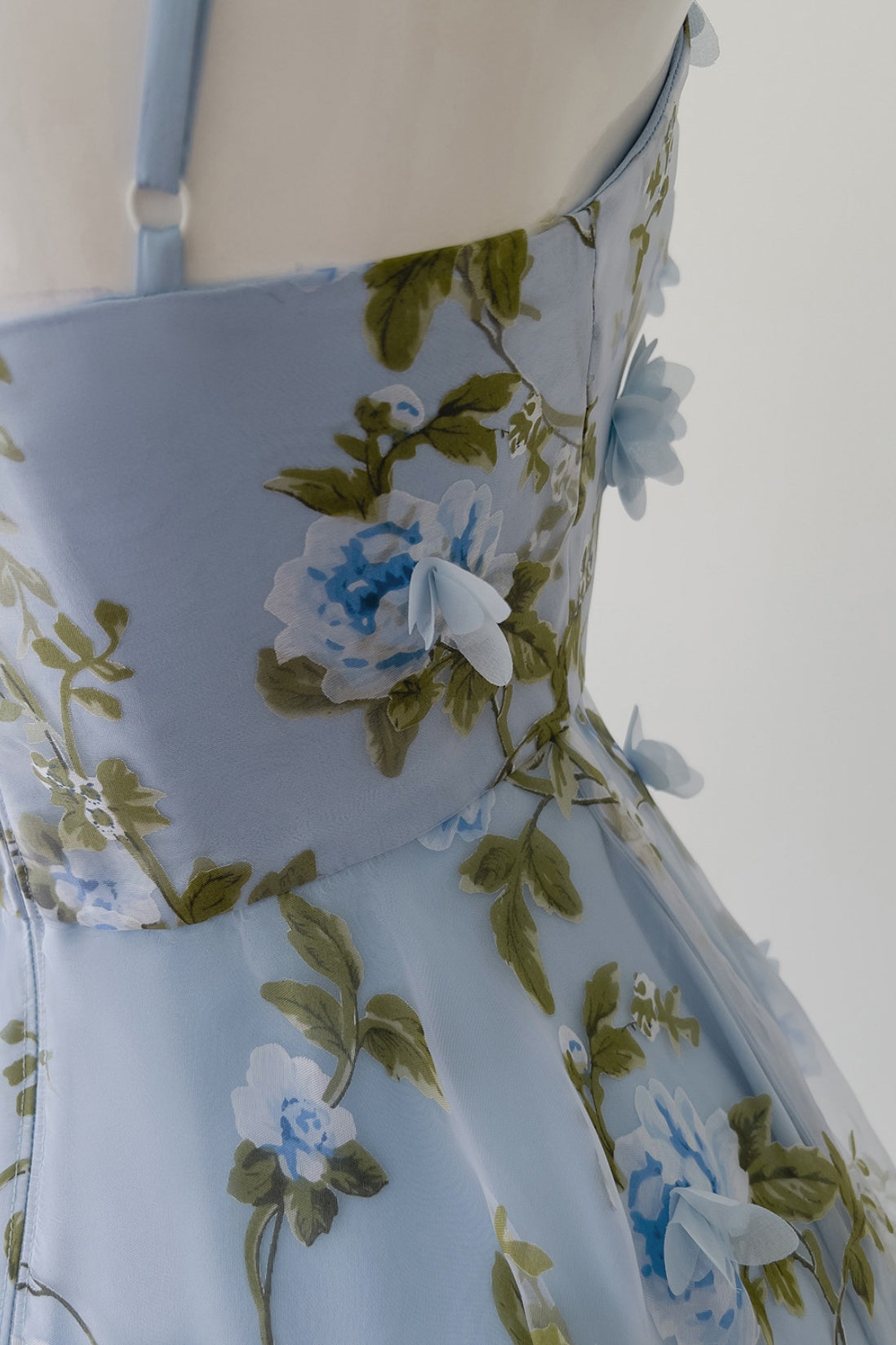 Blue Spaghetti Straps 3D Floral Long Dress