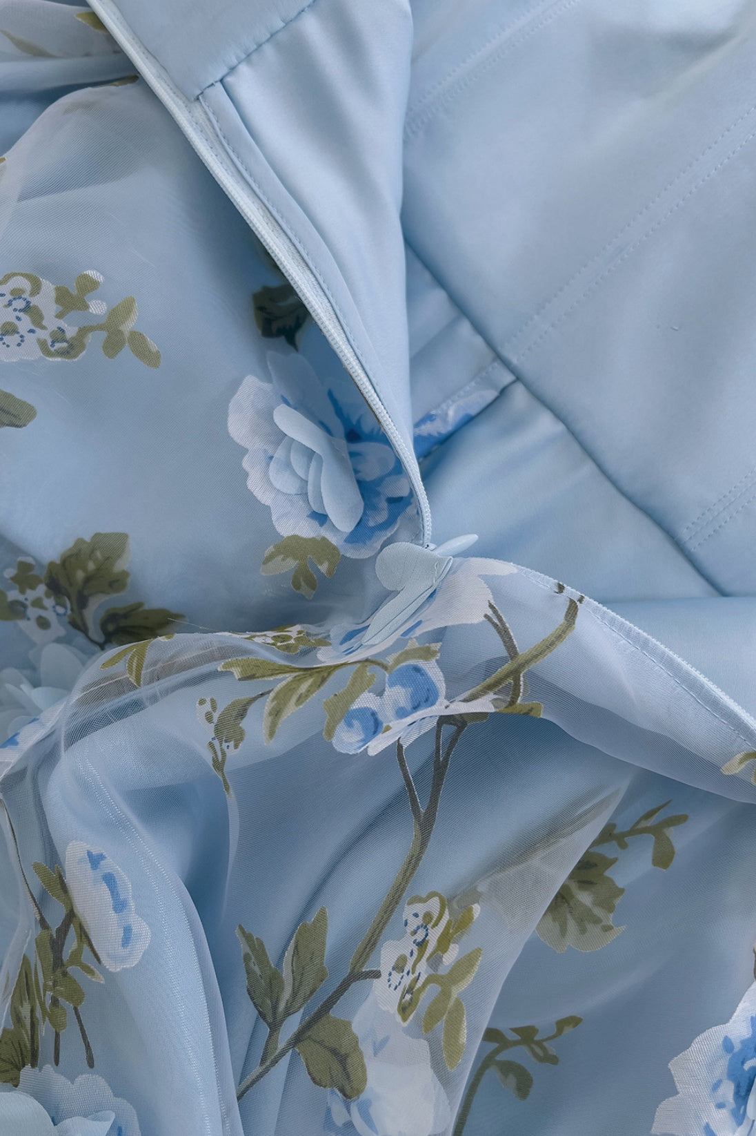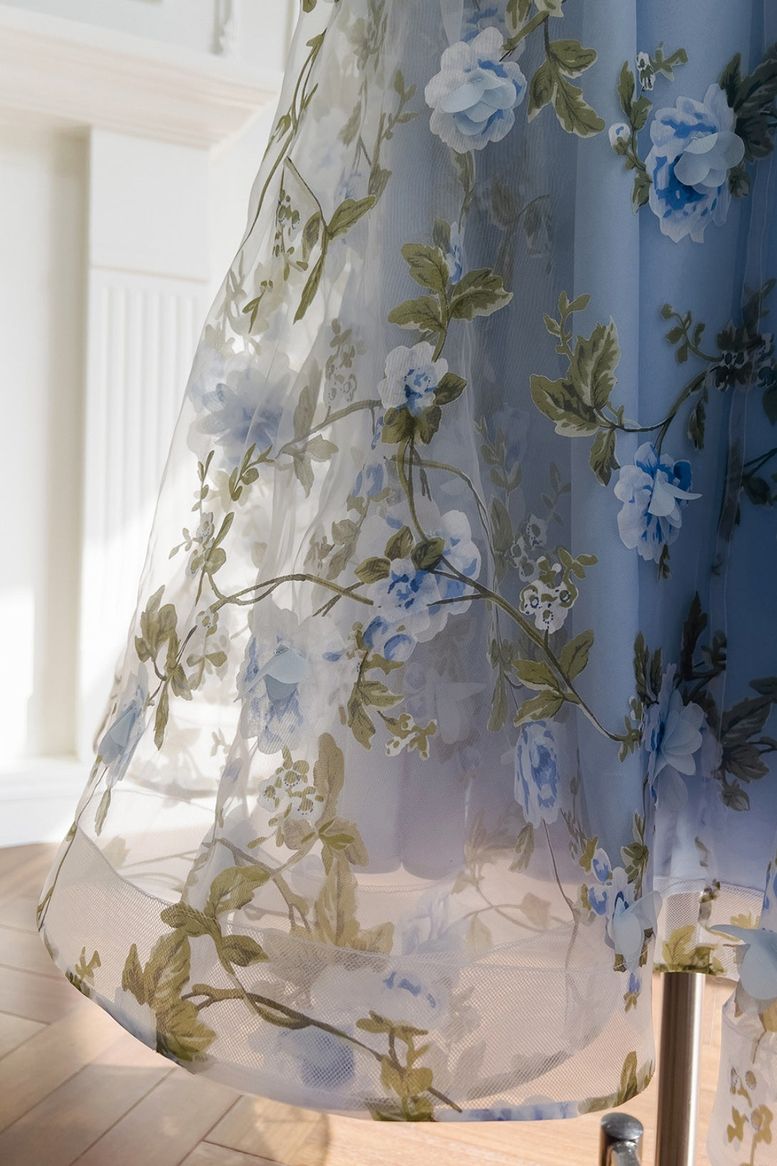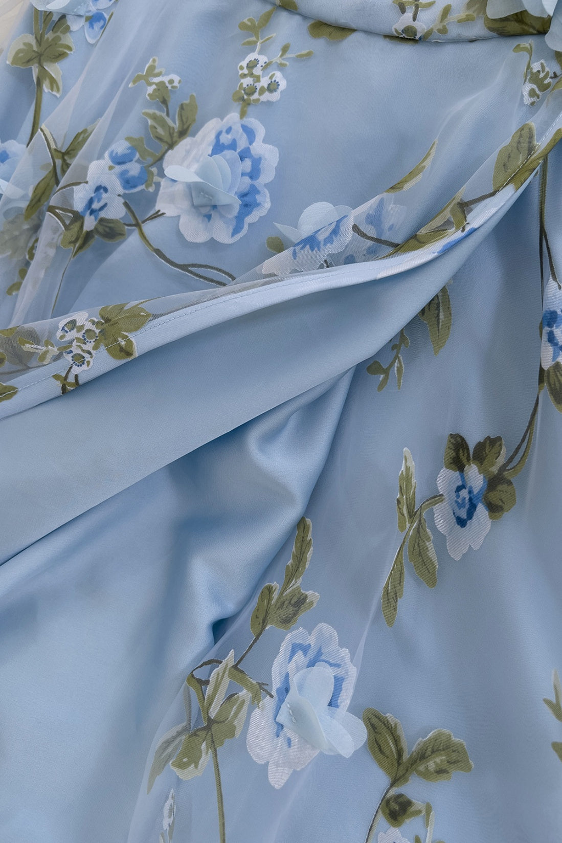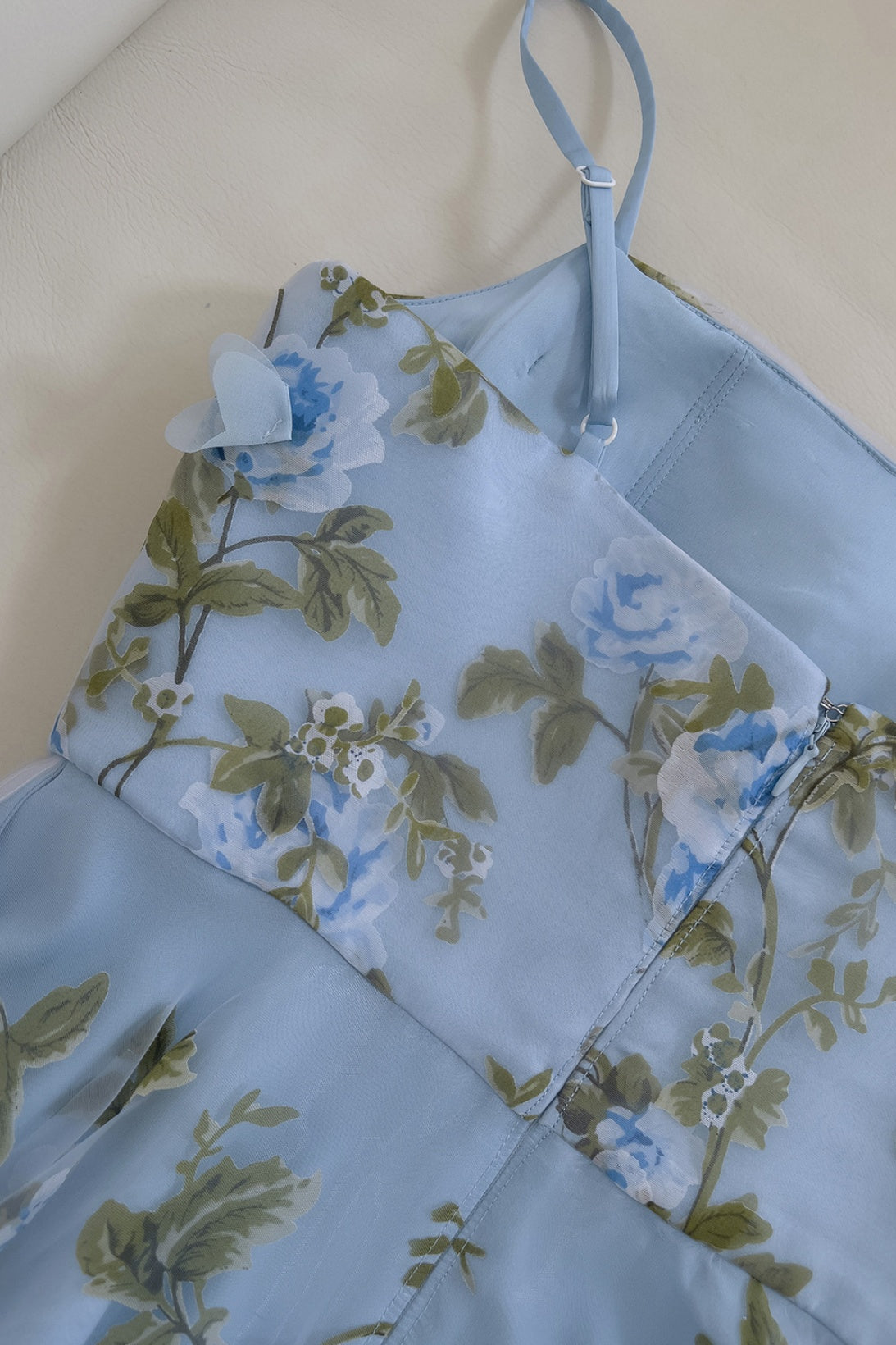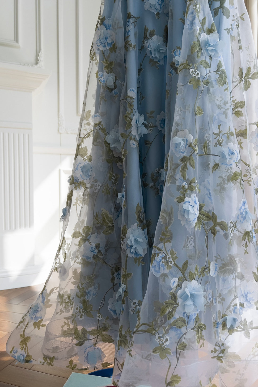 Blue Spaghetti Straps 3D Floral Long Dress