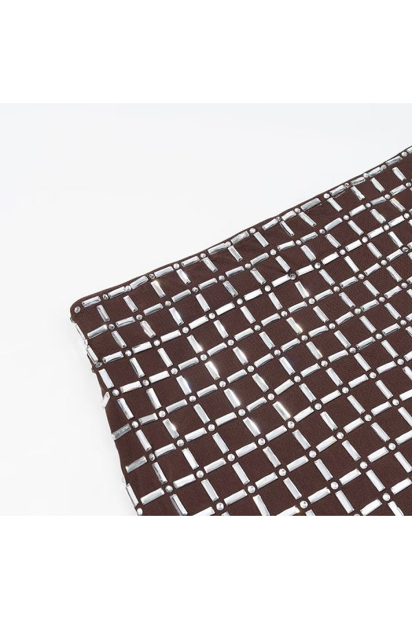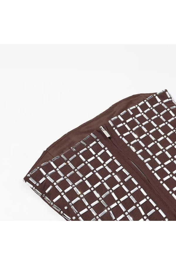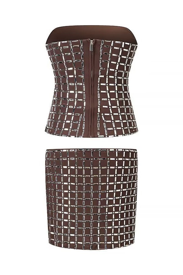 Brown Rhinestone Strapless Two-Piece Top and Mini Skirt Set