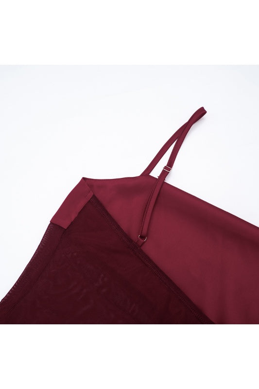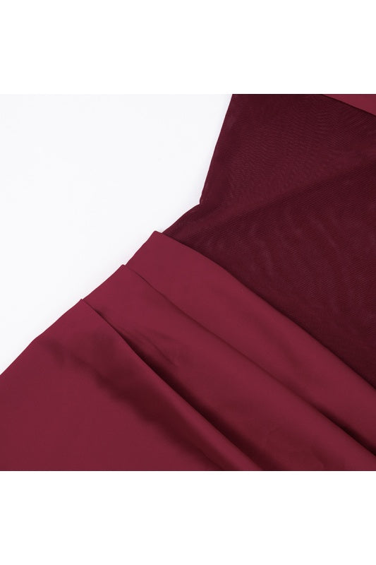 Burgundy Spaghetti Straps Cowl Neck A-Line Dress