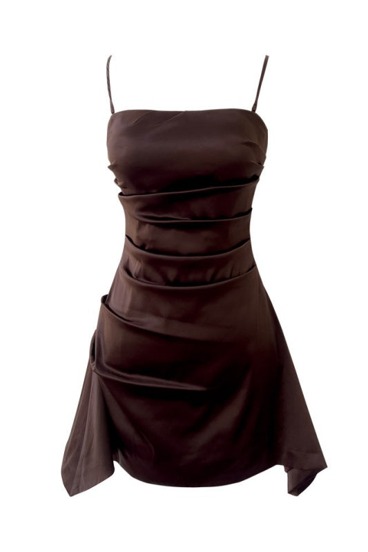 Coffee Brown A-line Mini Dress