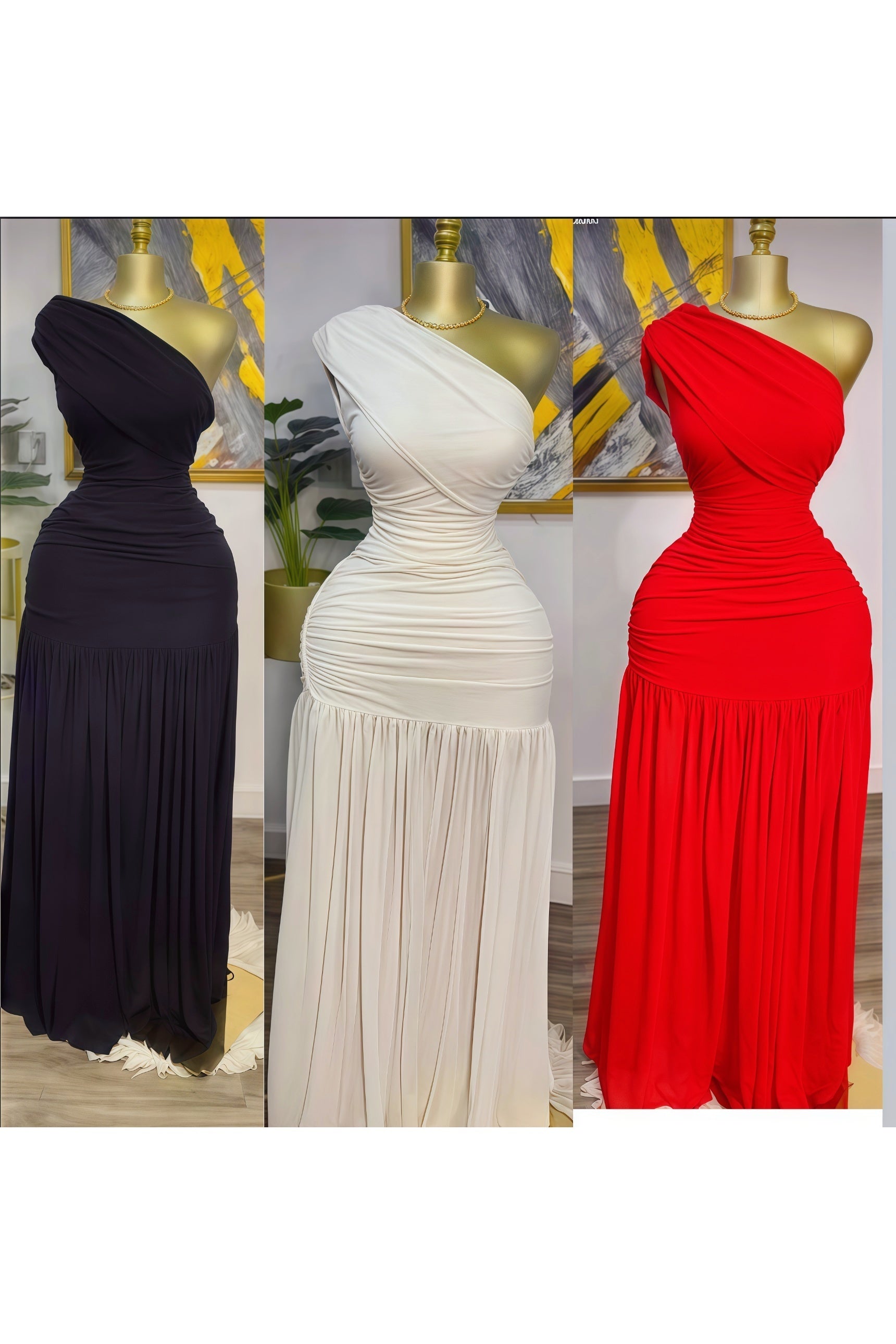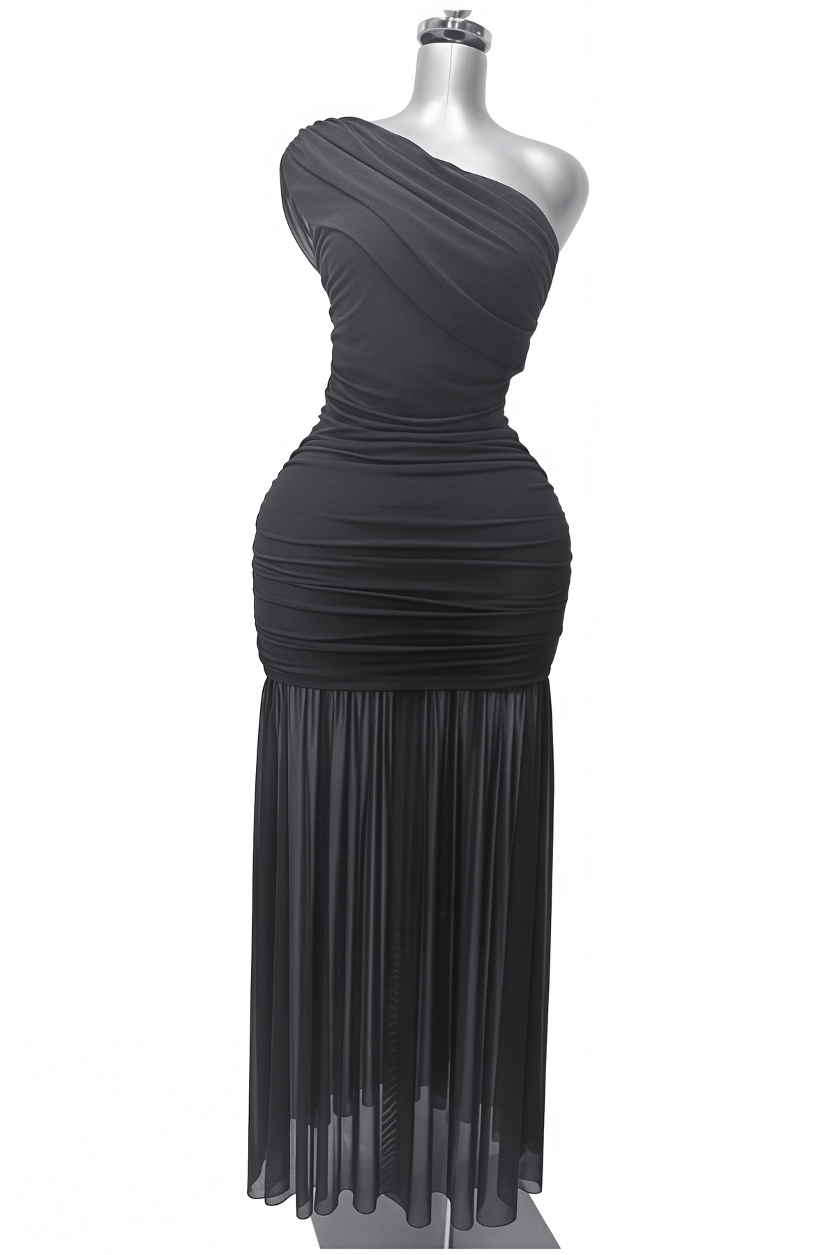 Crafted from polyester fiber, this lavender bodycon dress features a one-shoulder design with a flowing hem and an elastic fit. It includes a front slit and a low back, offering an elegant and flattering silhouette