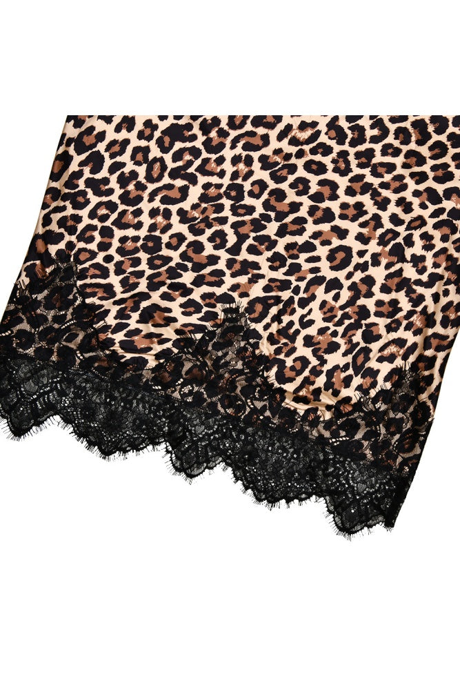 Leopard Print Spaghetti Straps V-neck Lace Dress