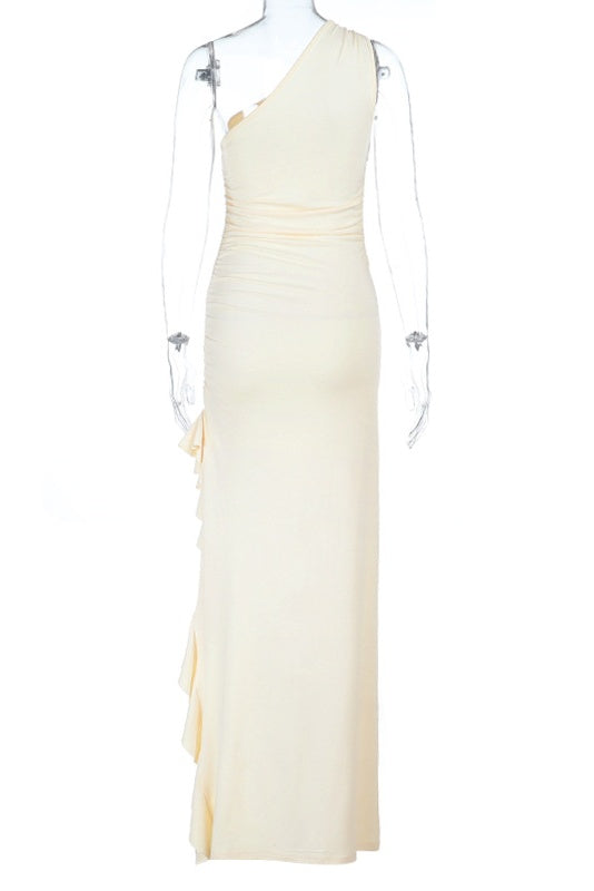 One-shoulder Slit Metal Ring Long Dress