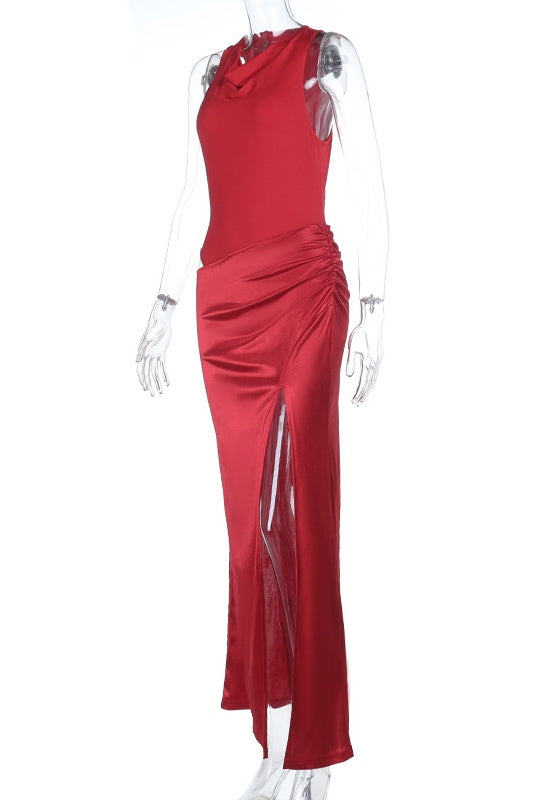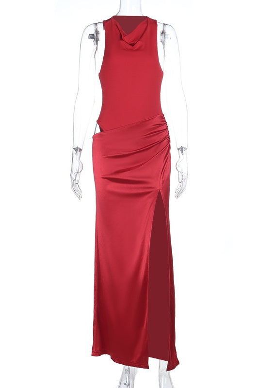 Red Cowl Waist Cut-out Long Dress