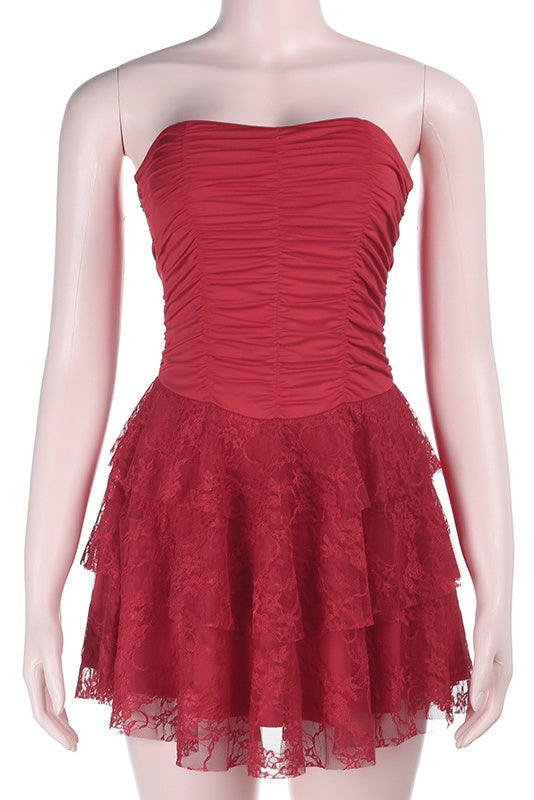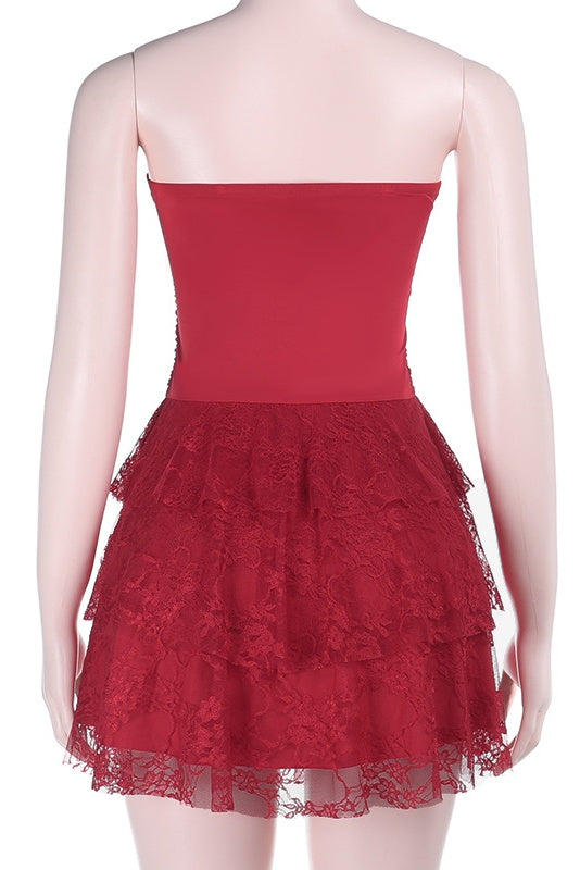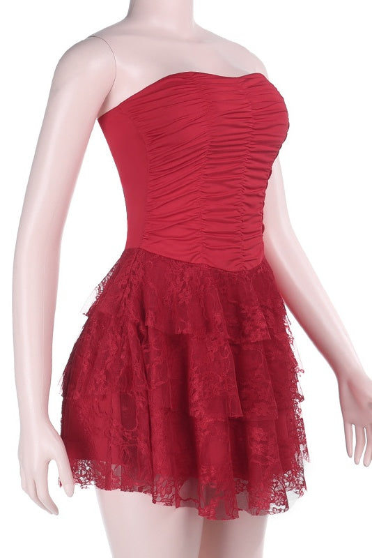 Red Strapless Tulle A-line Mini Dress