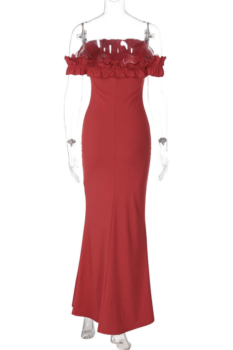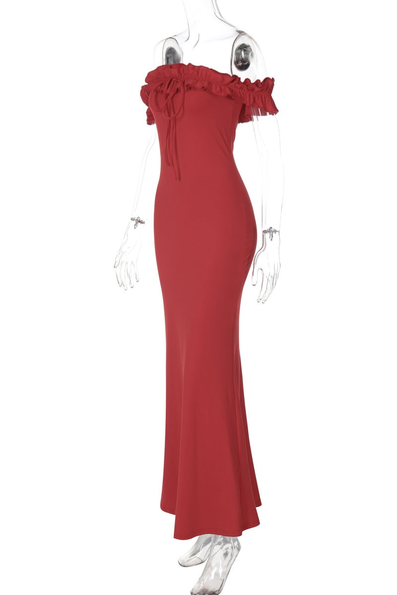 Ruffled Collar Off-Shoulder Mermaid Dress