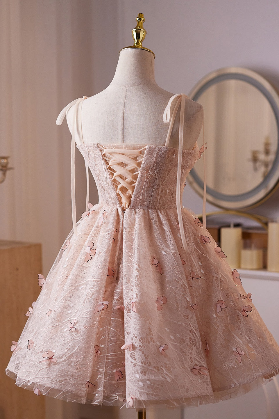 - Lace-up back with a zipper