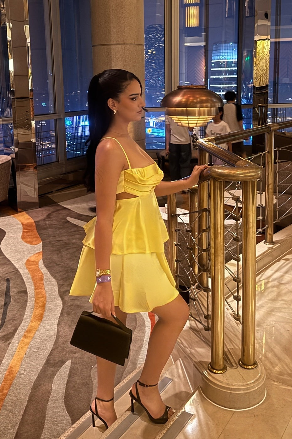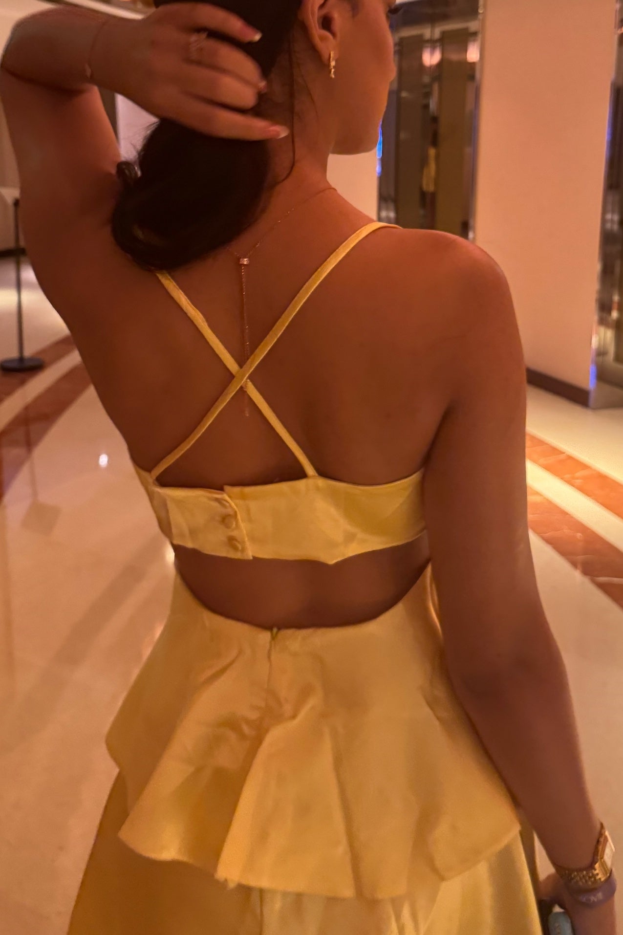 Straps Yellow Tiered Short Dress with Cut-out