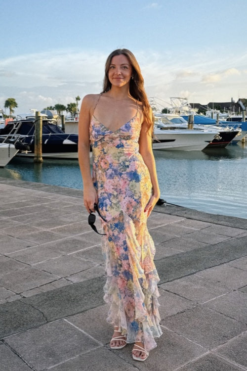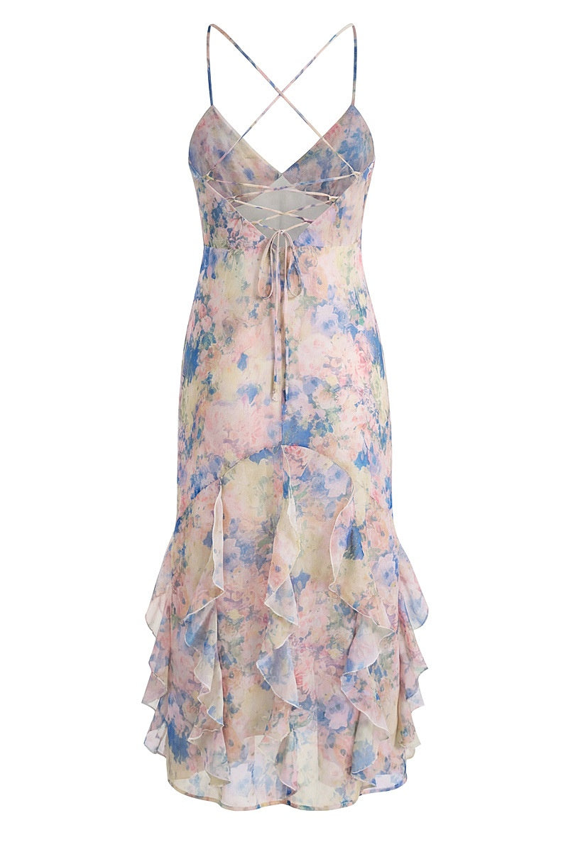 V-neck Floral Print Spaghetti Straps Dress