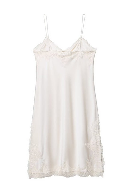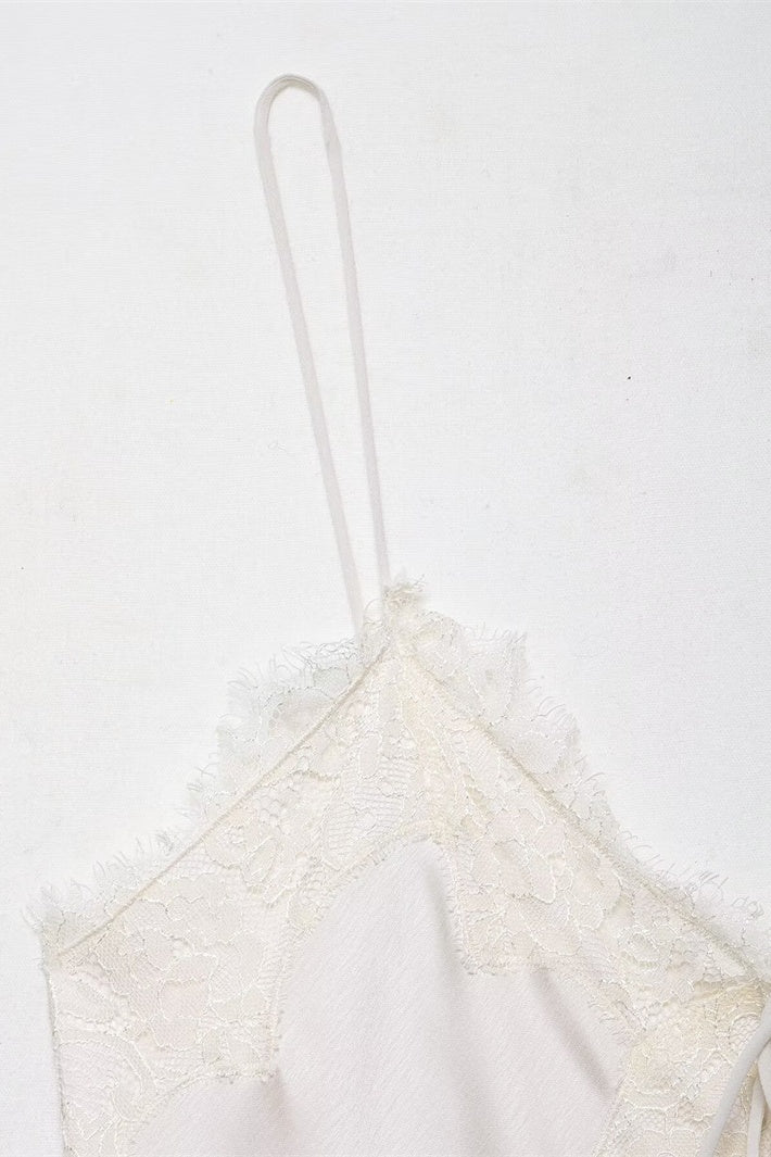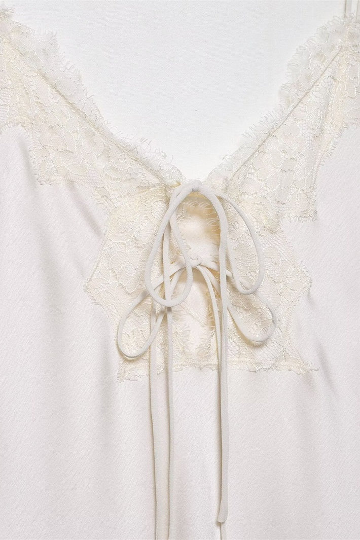 White V-neck Lace Trim Tie Dress