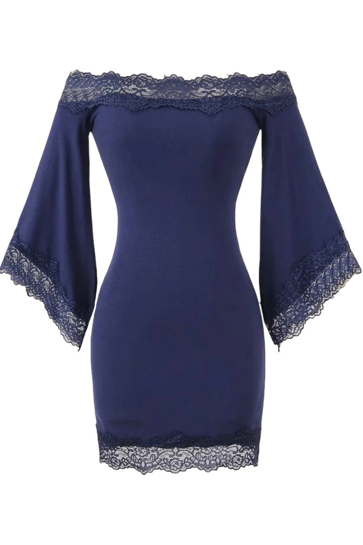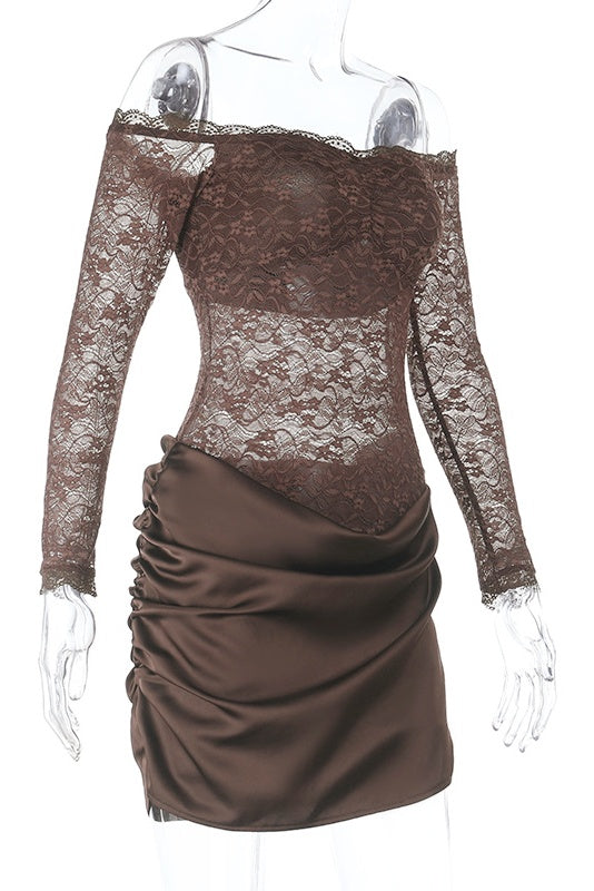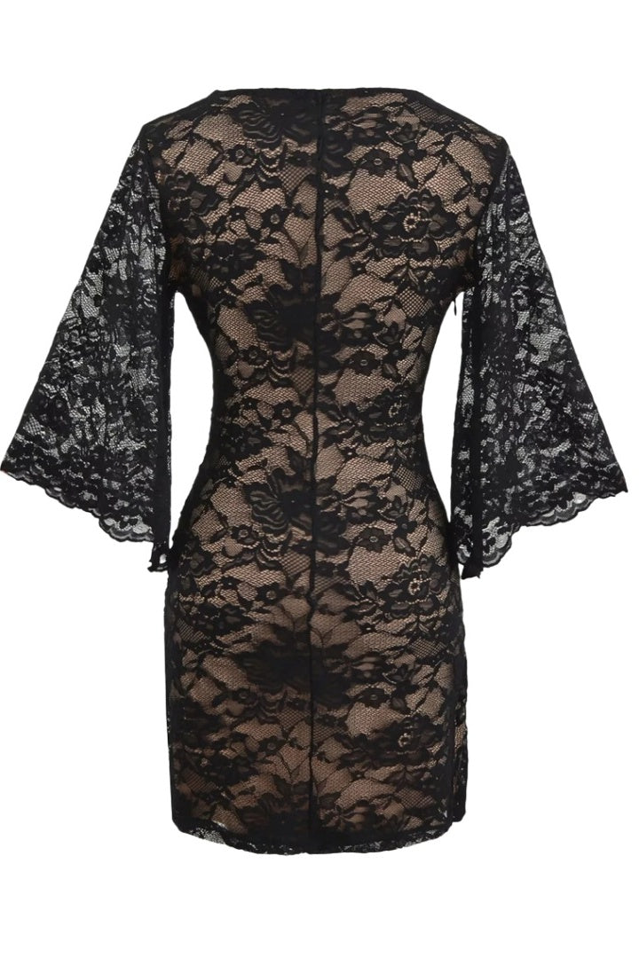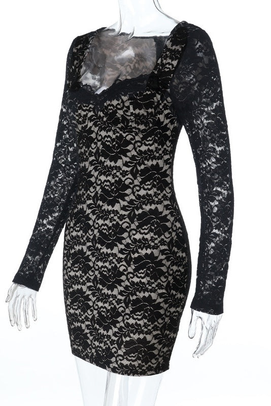Long-sleeve Lace Print Mini Dress
