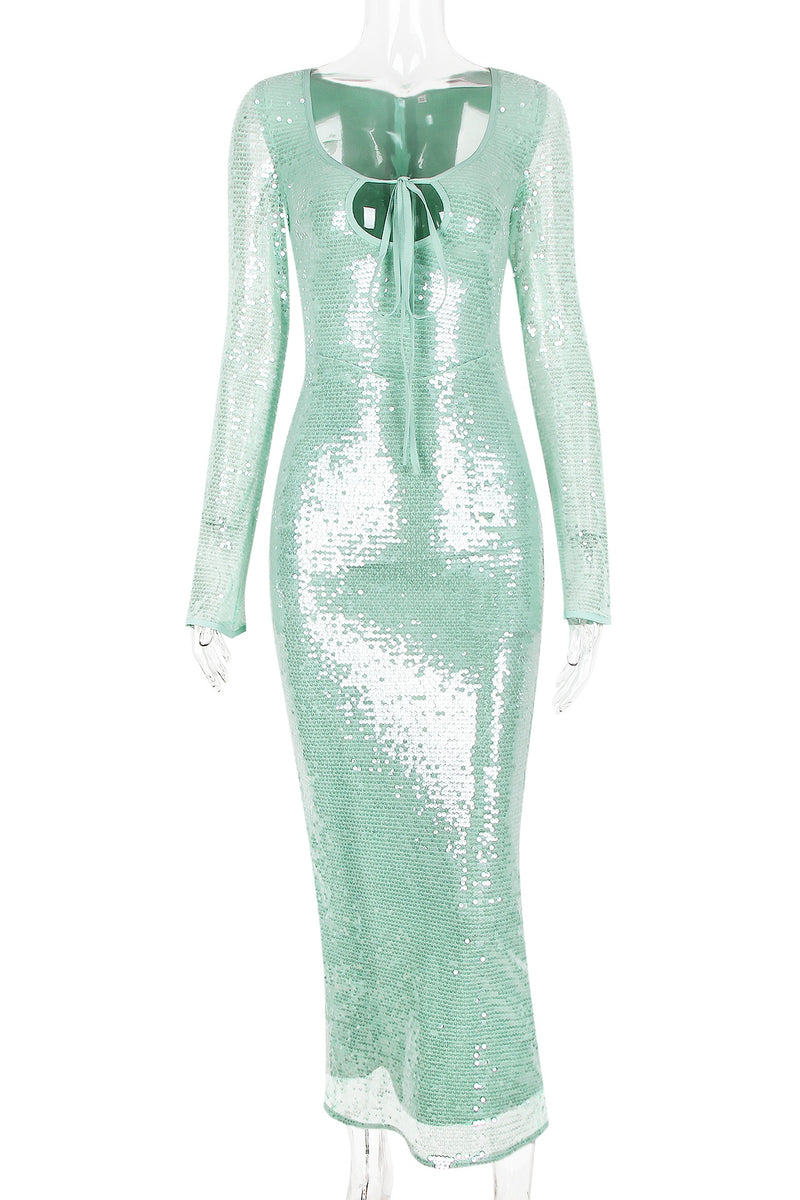 Green Sequin Long Sleeves Dress