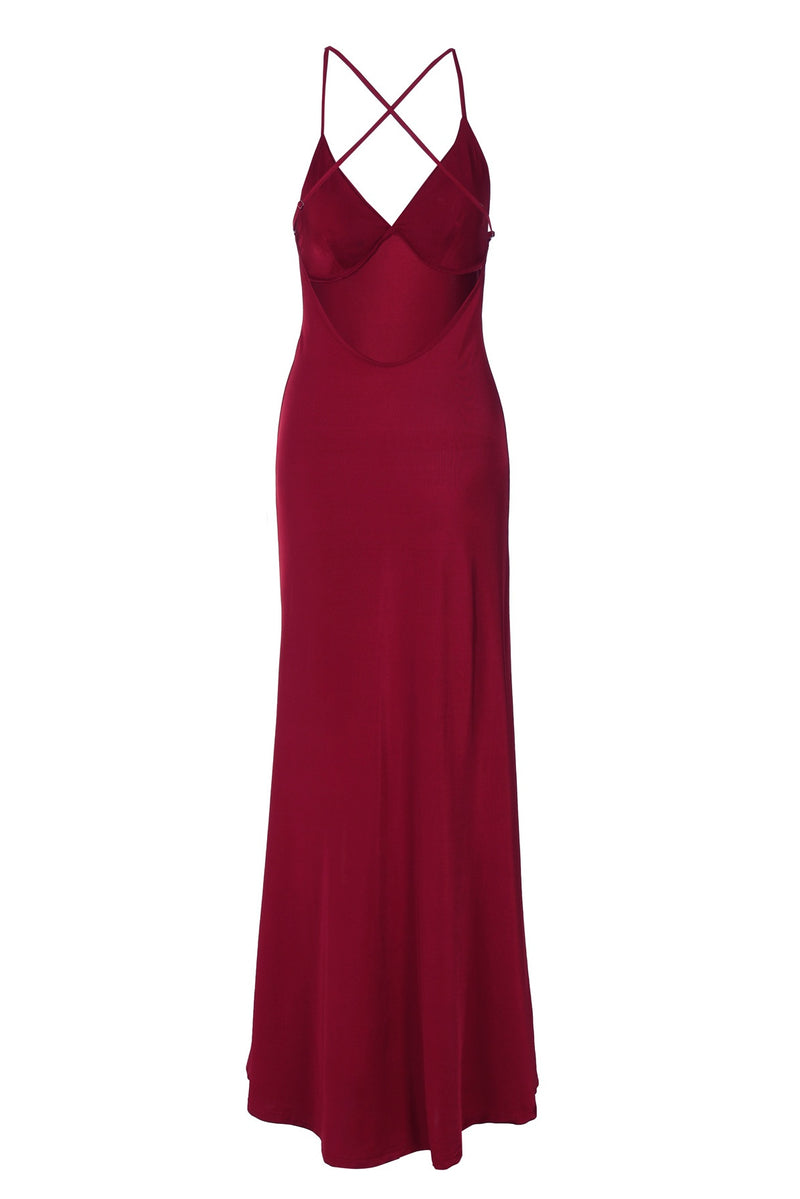 Burgundy Low Back Mermaid Dress