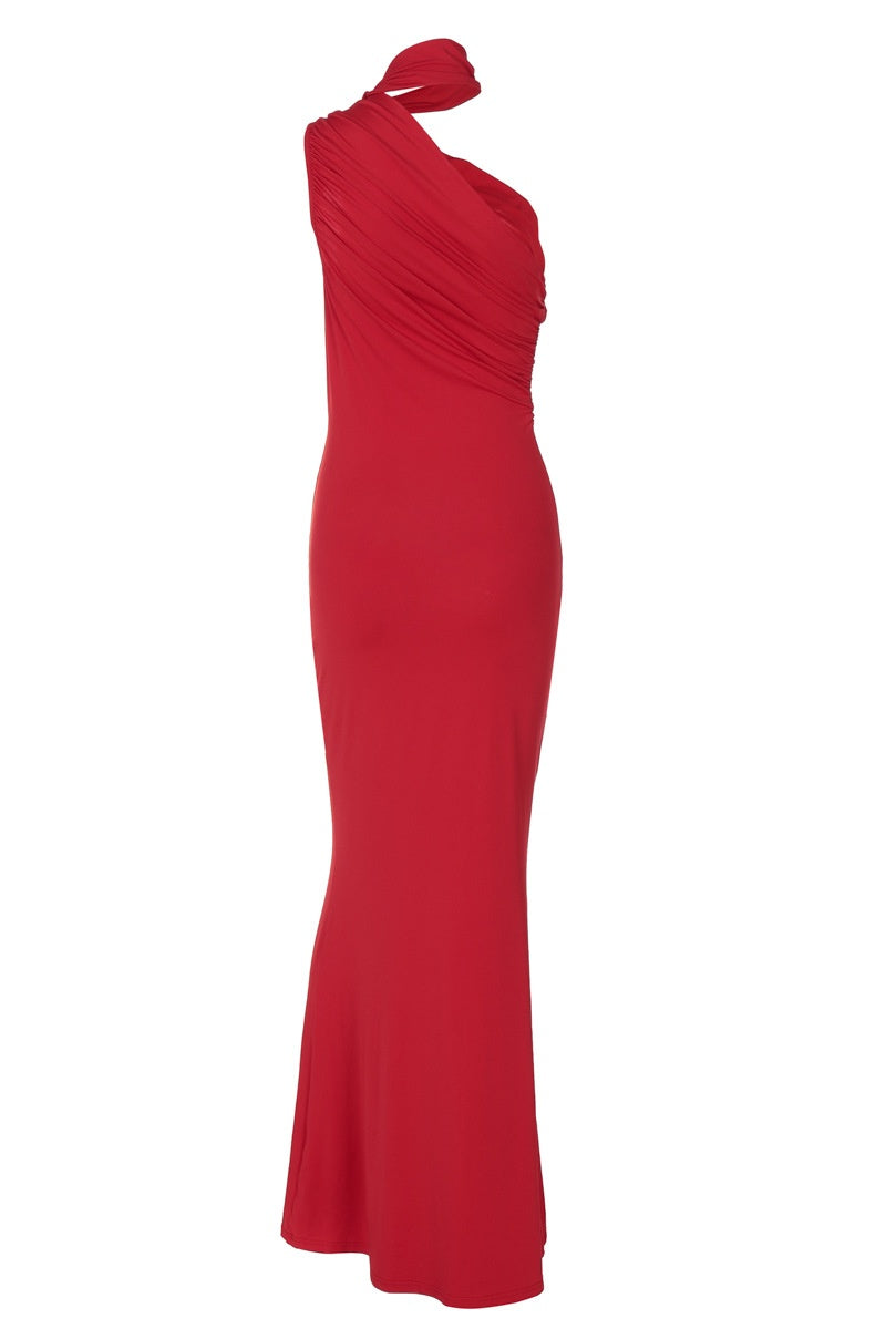 Red Halter Long Mermaid Dress