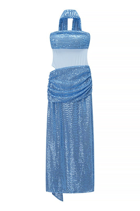 Blue Sequins Long A-line Dress