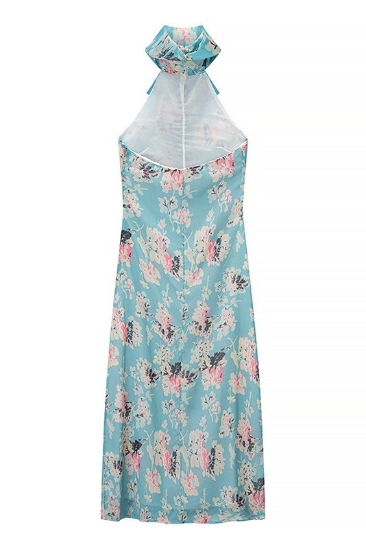 Halter V-neck High-Low Hem Dress