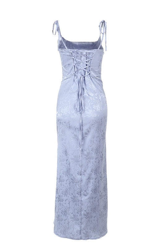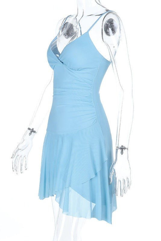 Sky Color Halter V-neck Dress