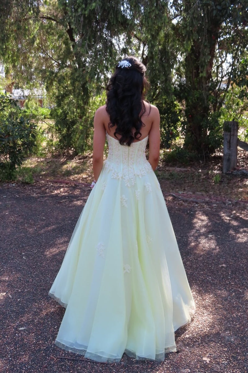 Yellow Sweetheart Long Floral Appliqués A-line Dress