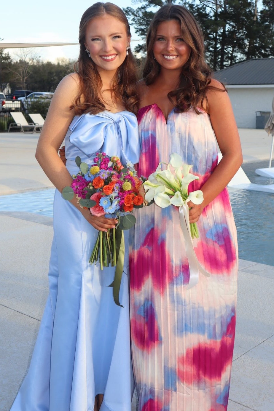 Strapless Light Blue Bow Mermaid Long Formal Dress