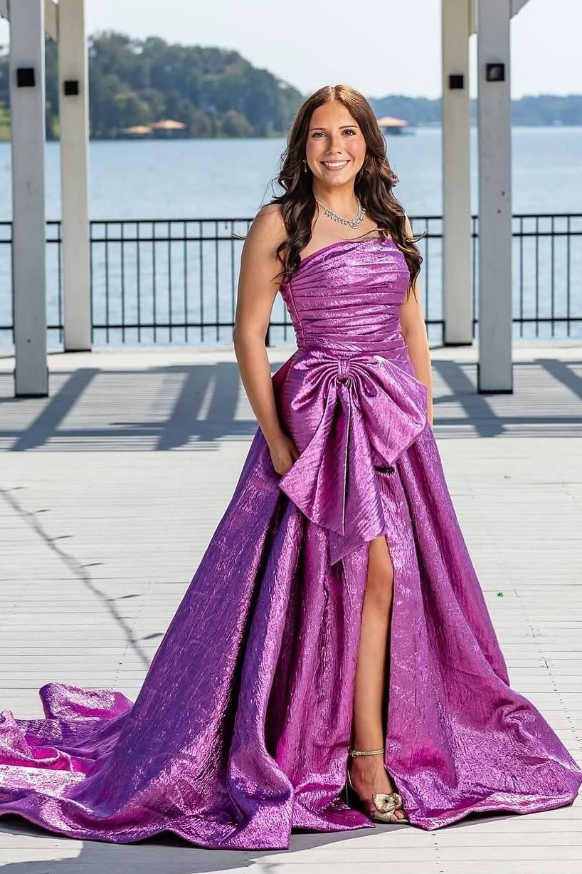 Strapless Royal Blue Ruched A-line Long Formal Gown