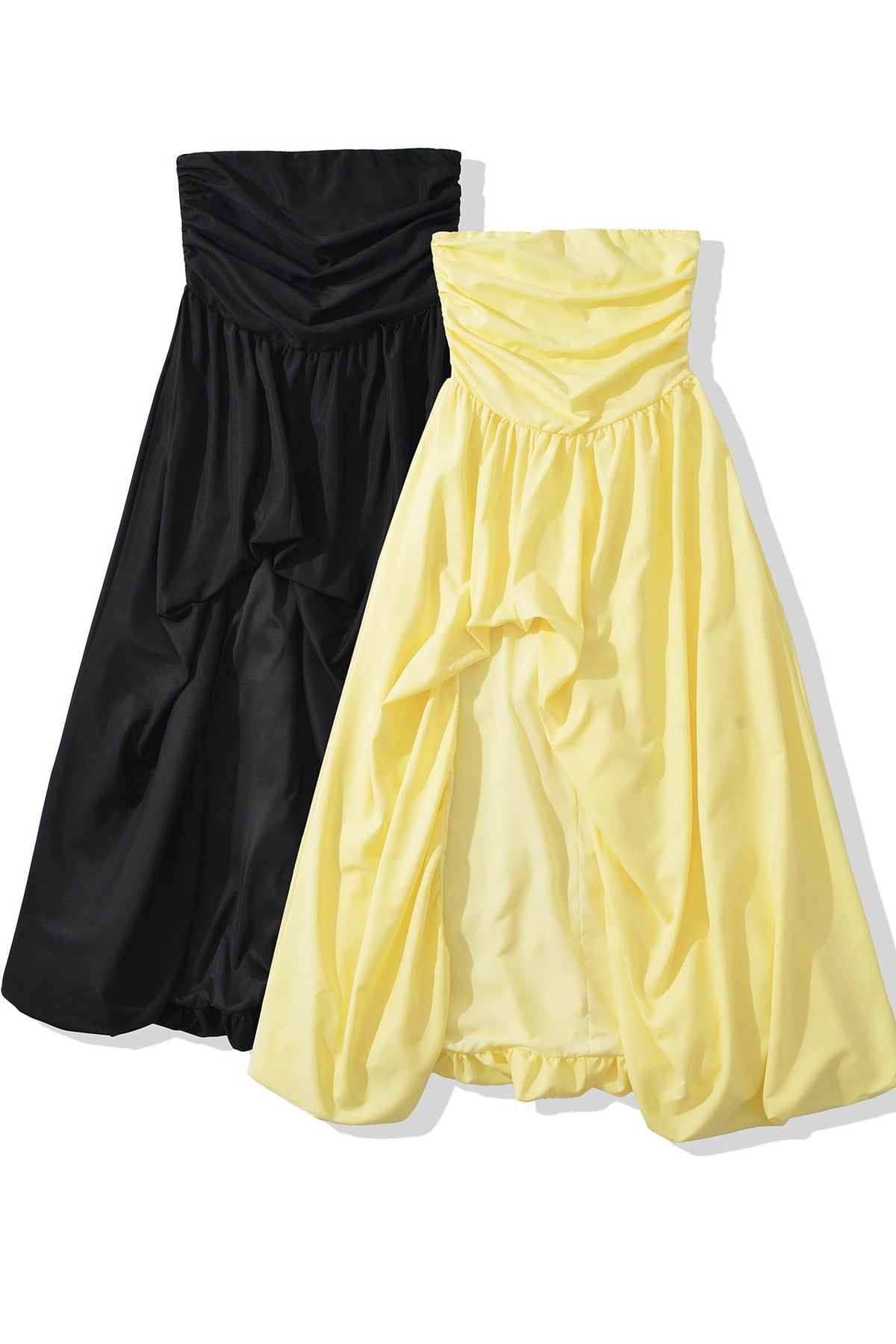 Strapless Yellow Slit Long Dress