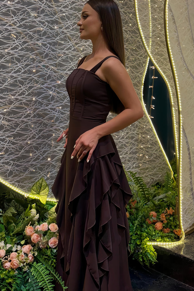 Burgundy Spaghetti Straps Asymmetric Hem Long Dress