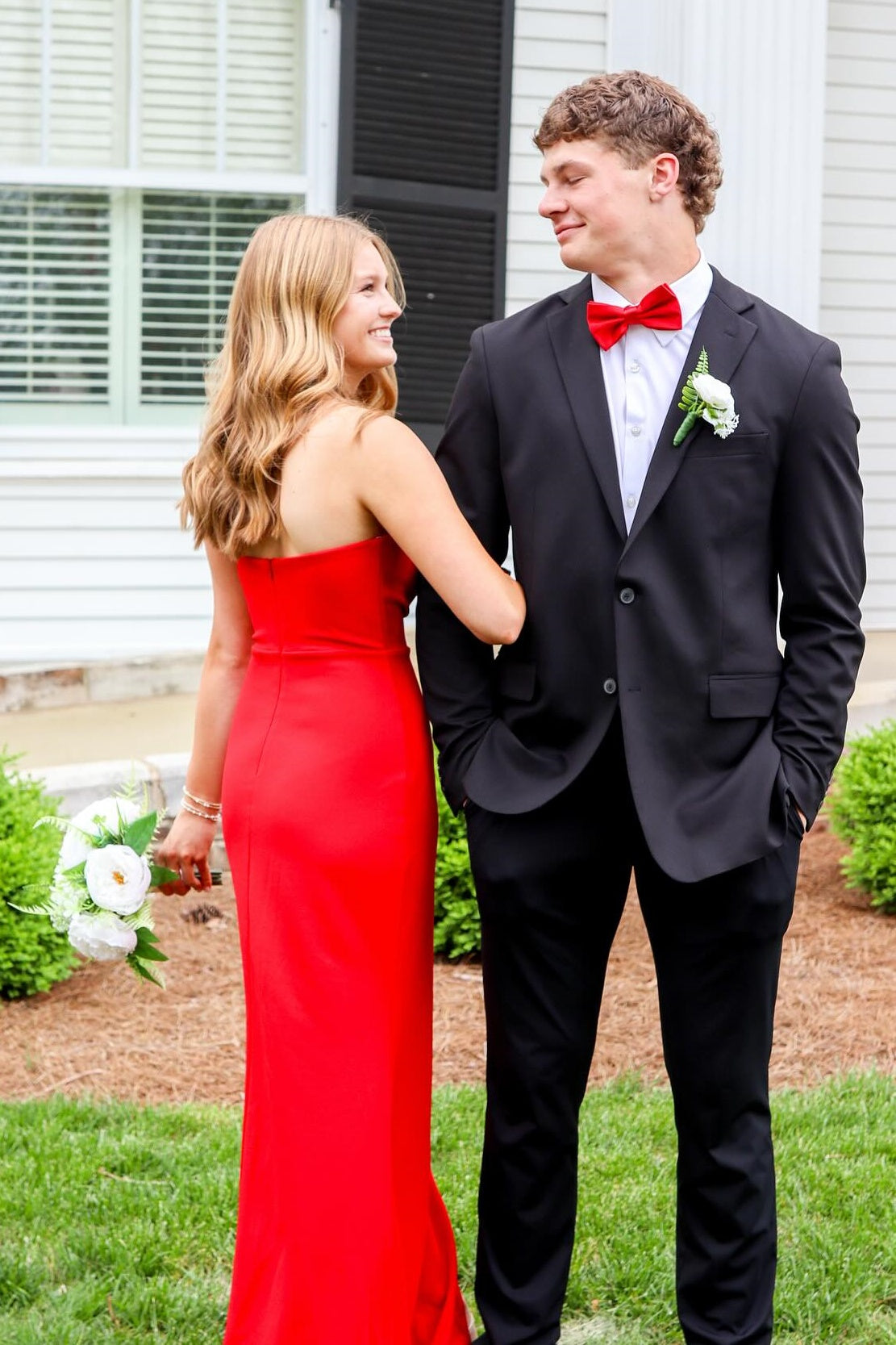 Red Strapless Fitted V-neck Maxi Dress