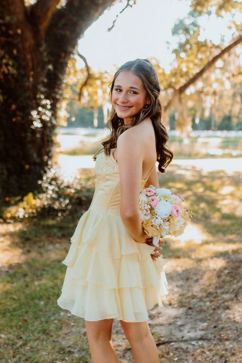 Ruffle is a new trending for homecoming party. Dressesforparty offers latest style and affordable price short dress for 2024 homecoming.