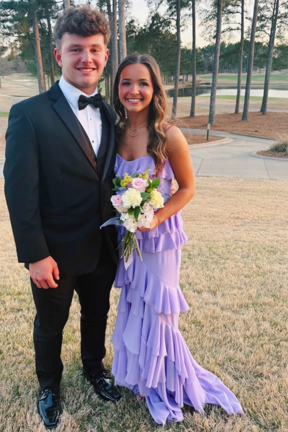 Lavender Sweetheart Ruffle Floor-Length Slit Dress