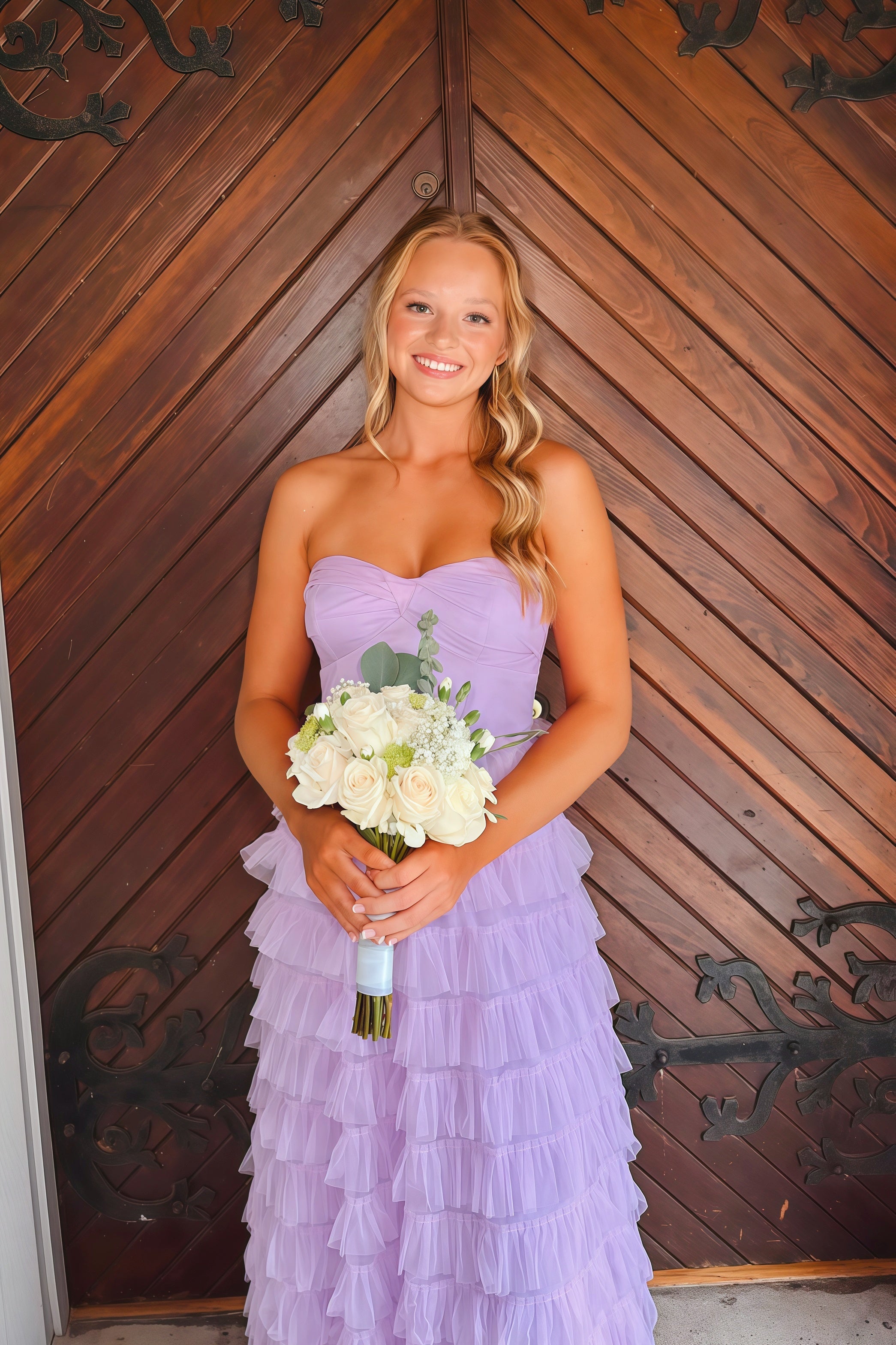 Lavender Sweetheart Tiered Ruffled Tulle Dress