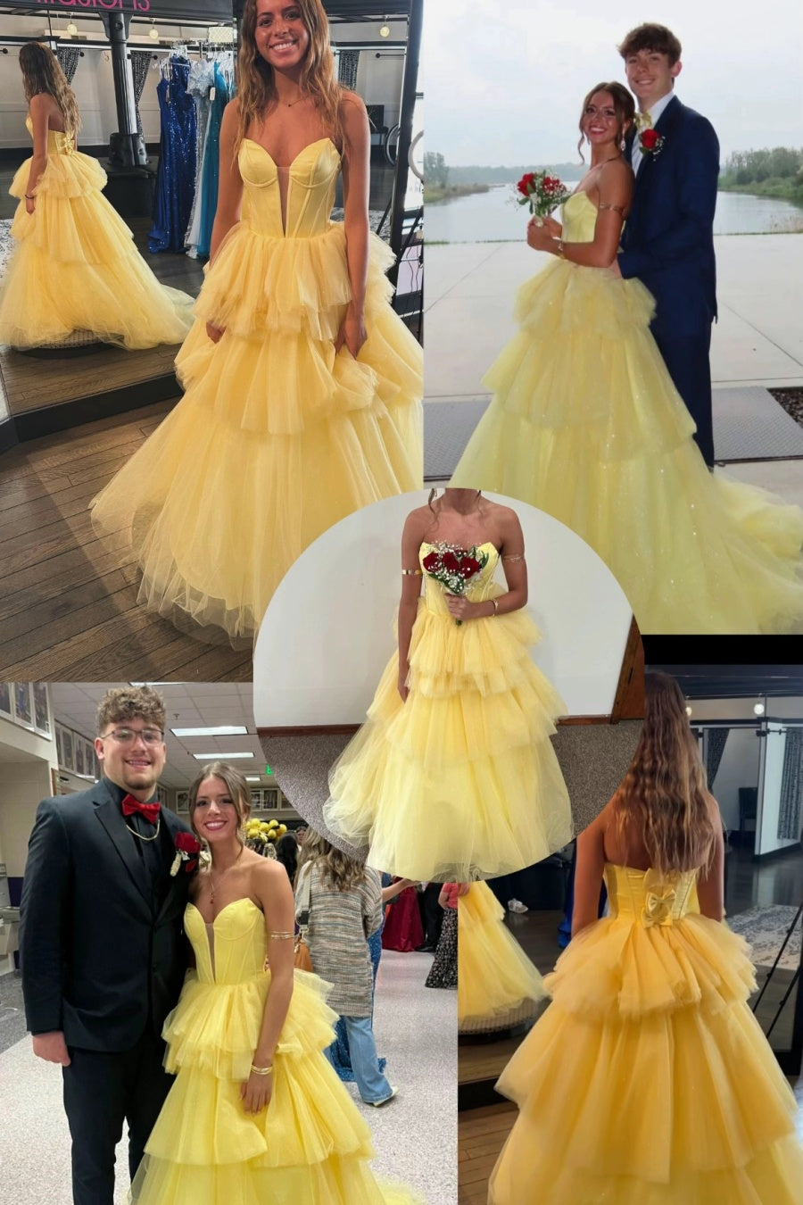 Sweetheart Yellow Tulle A-line Tiered Ball Gown