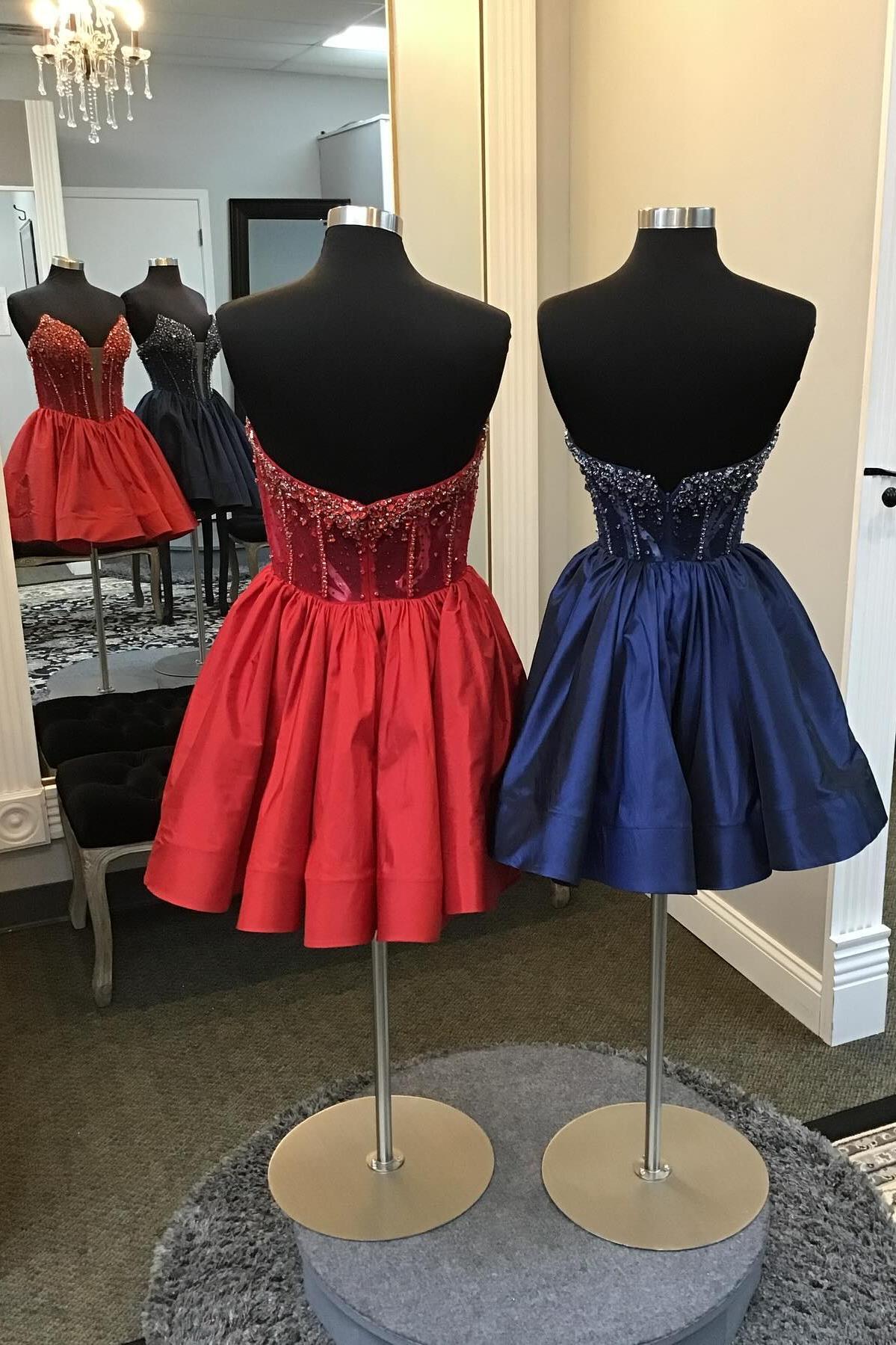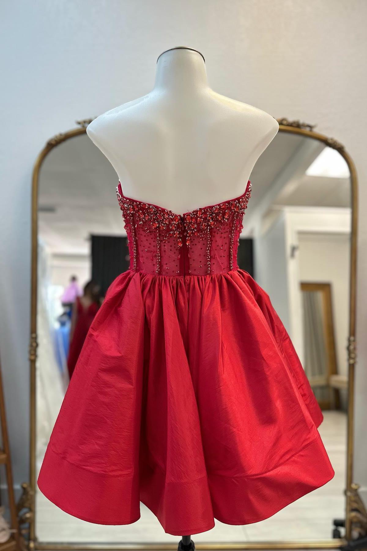 Beaded Sweetheart Red A-line Short Princess Dress