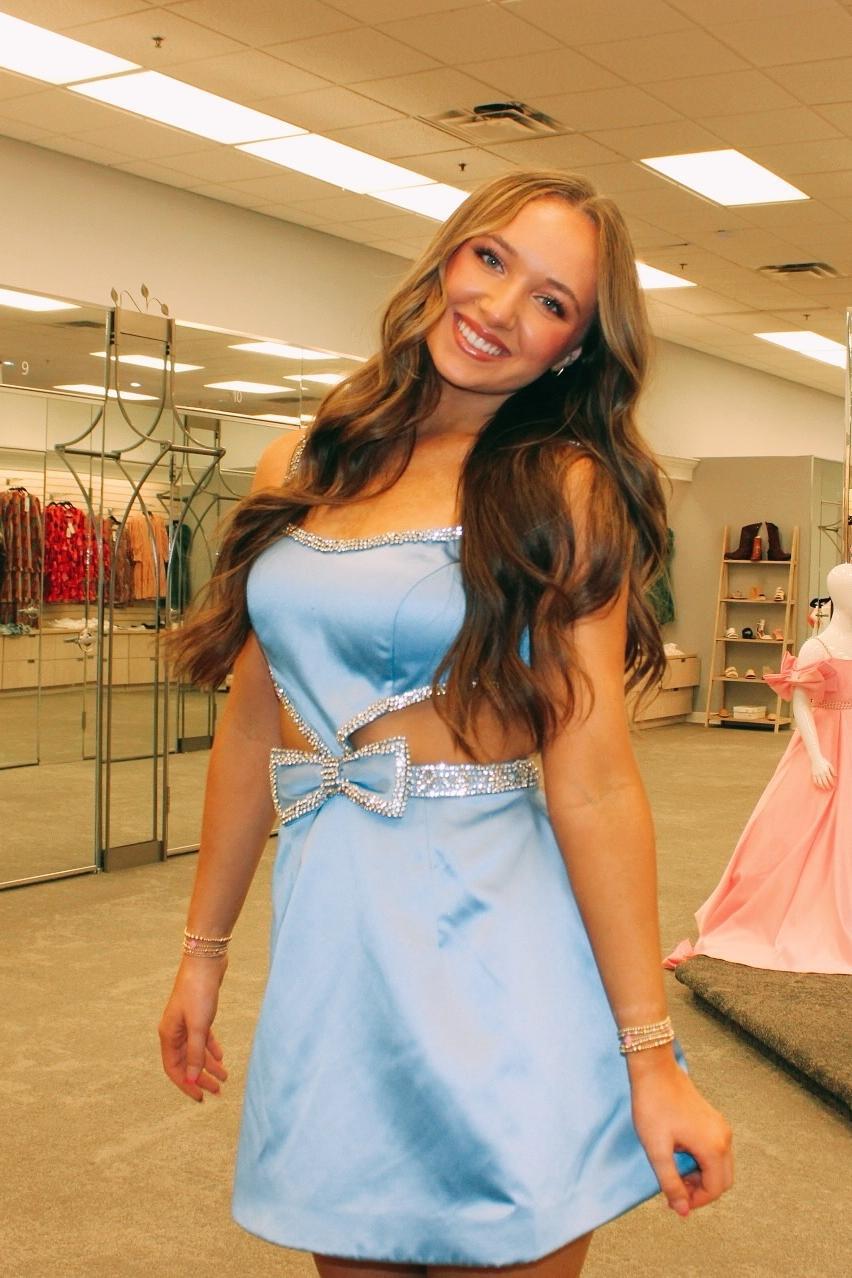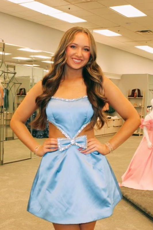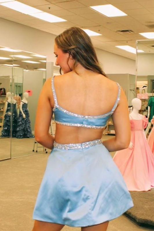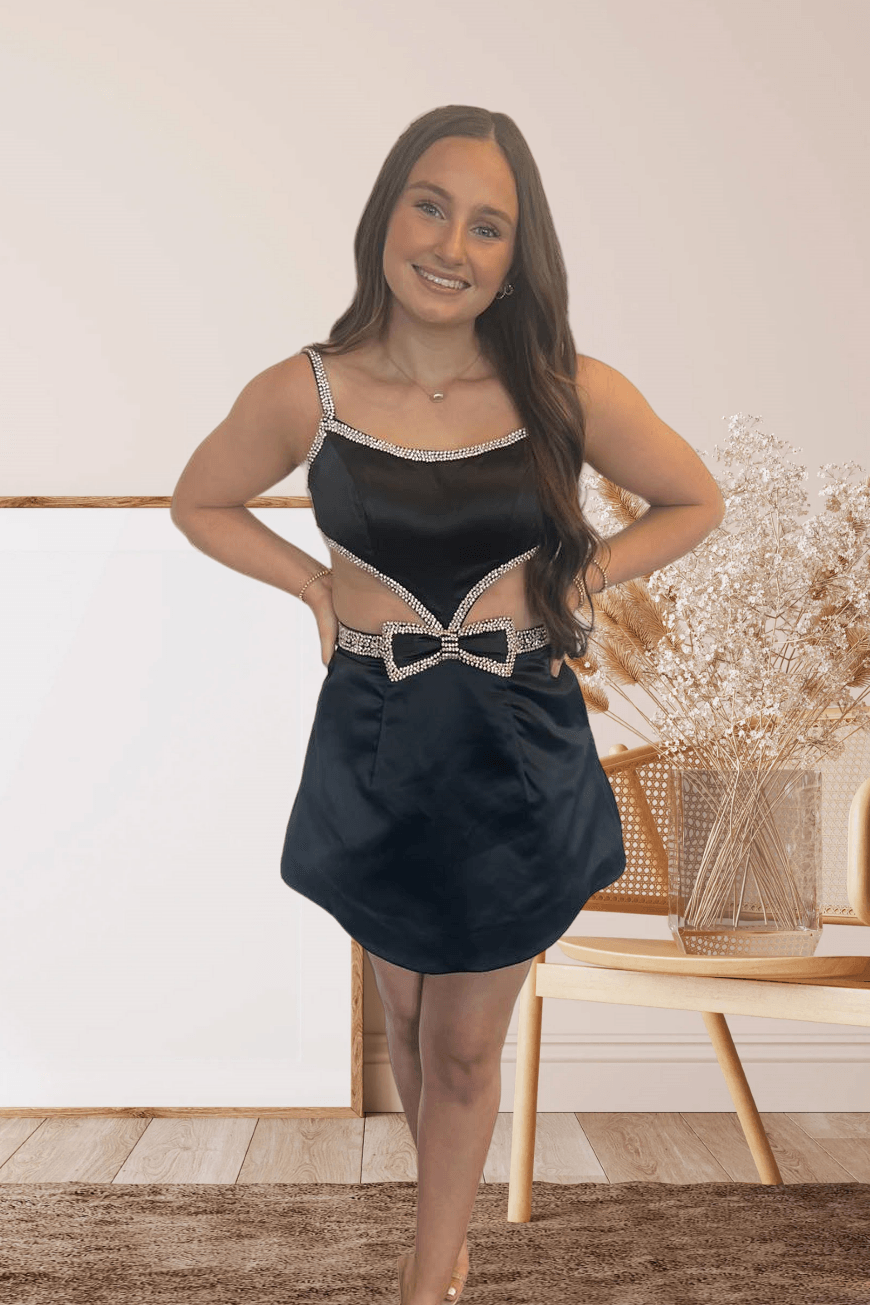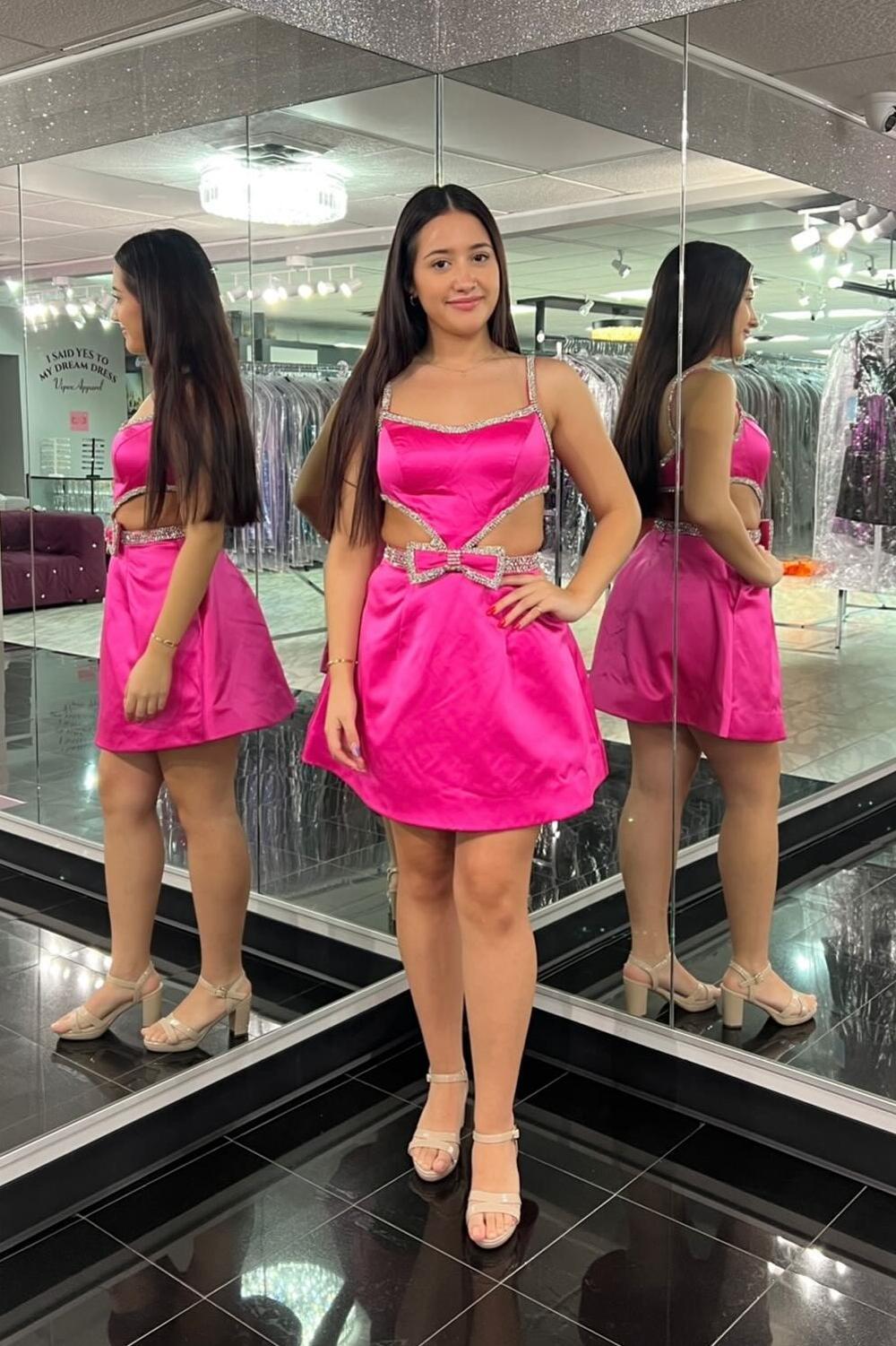 Hot Pink Beaded Cutout A-line Short Satin Homecoming Dress