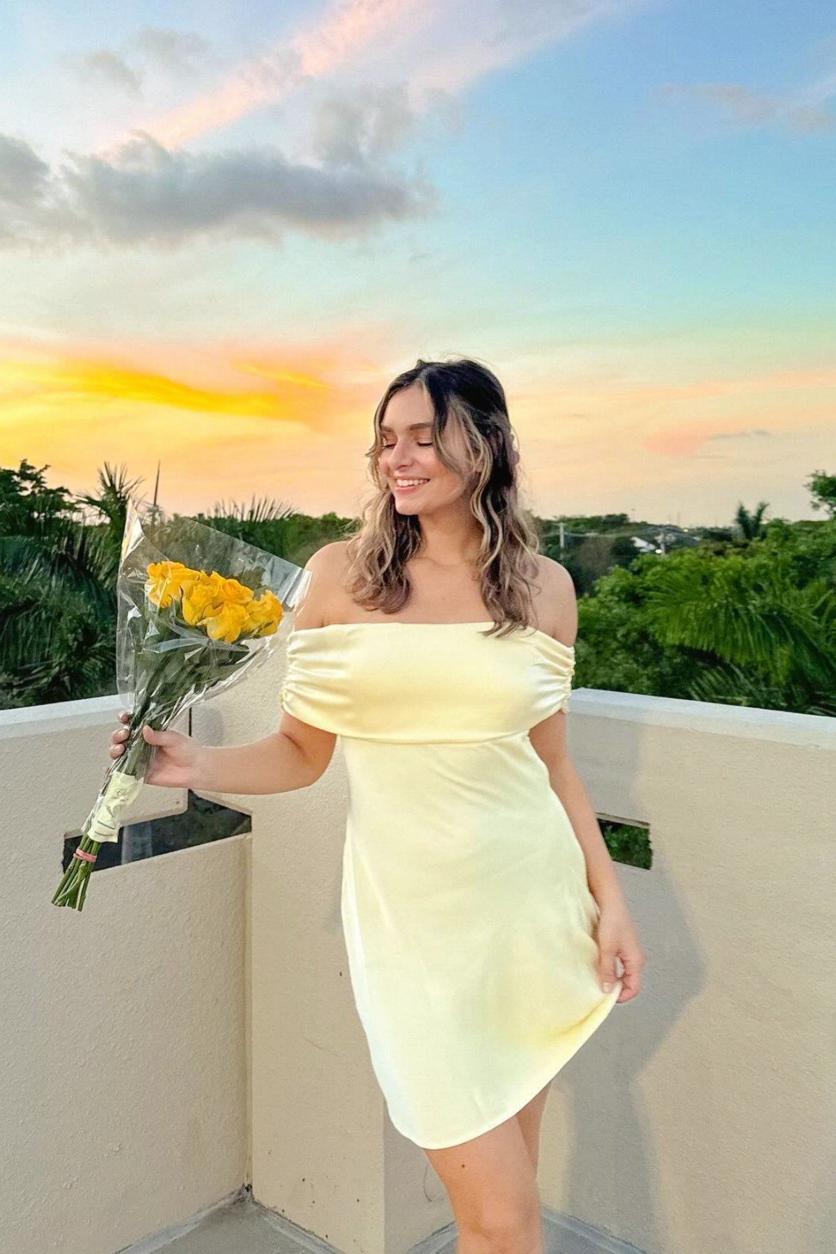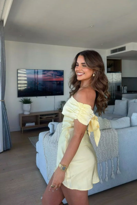 Orange Off-the-Shoulder Mini Dress with Bow Detail